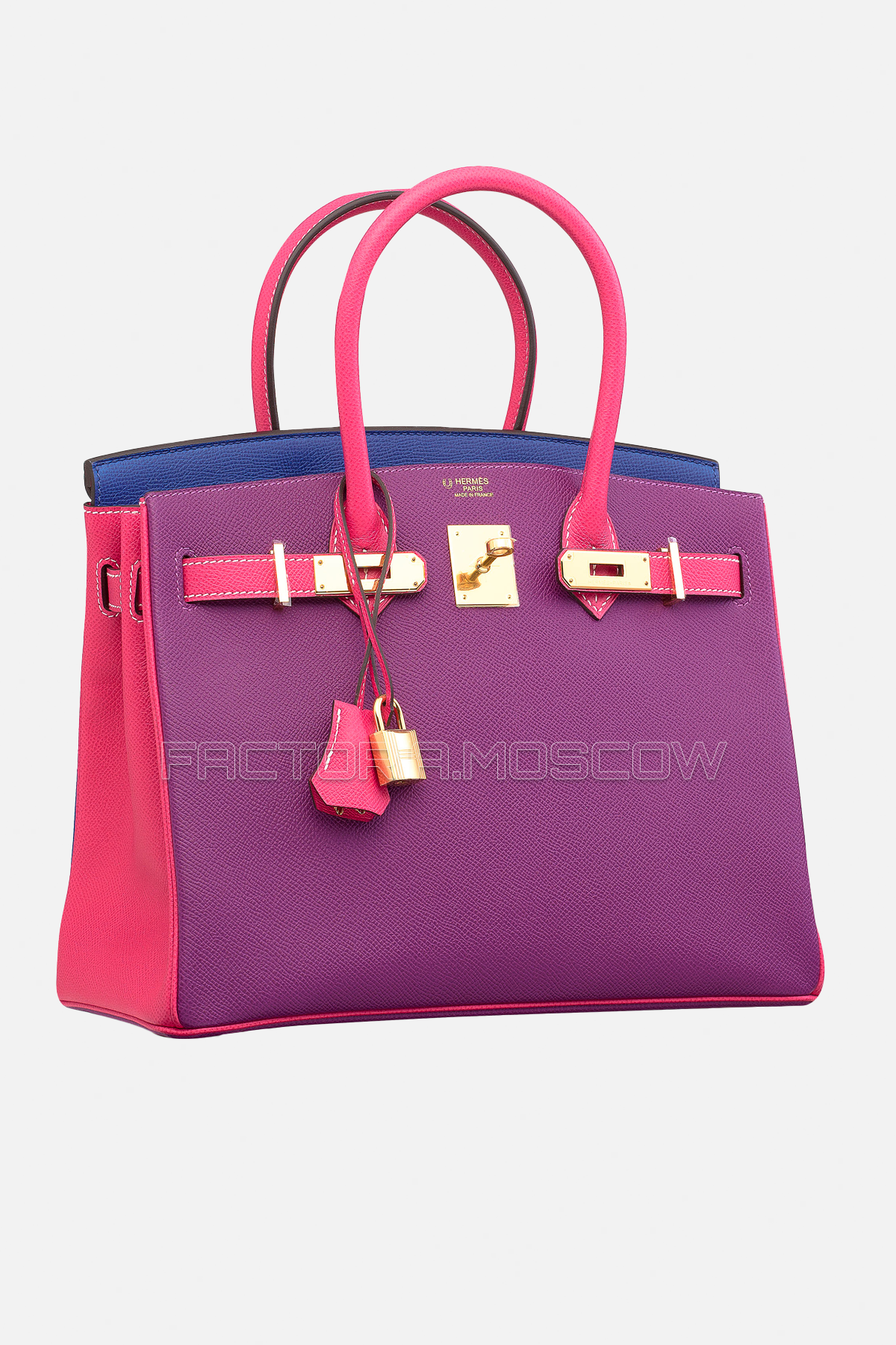 Birkin 30 в цветах Anemone, Rose Tyrien, Bleu Électrique обязательно станет главной жемчужиной в вашей коллекции люксовых аксессуаров.