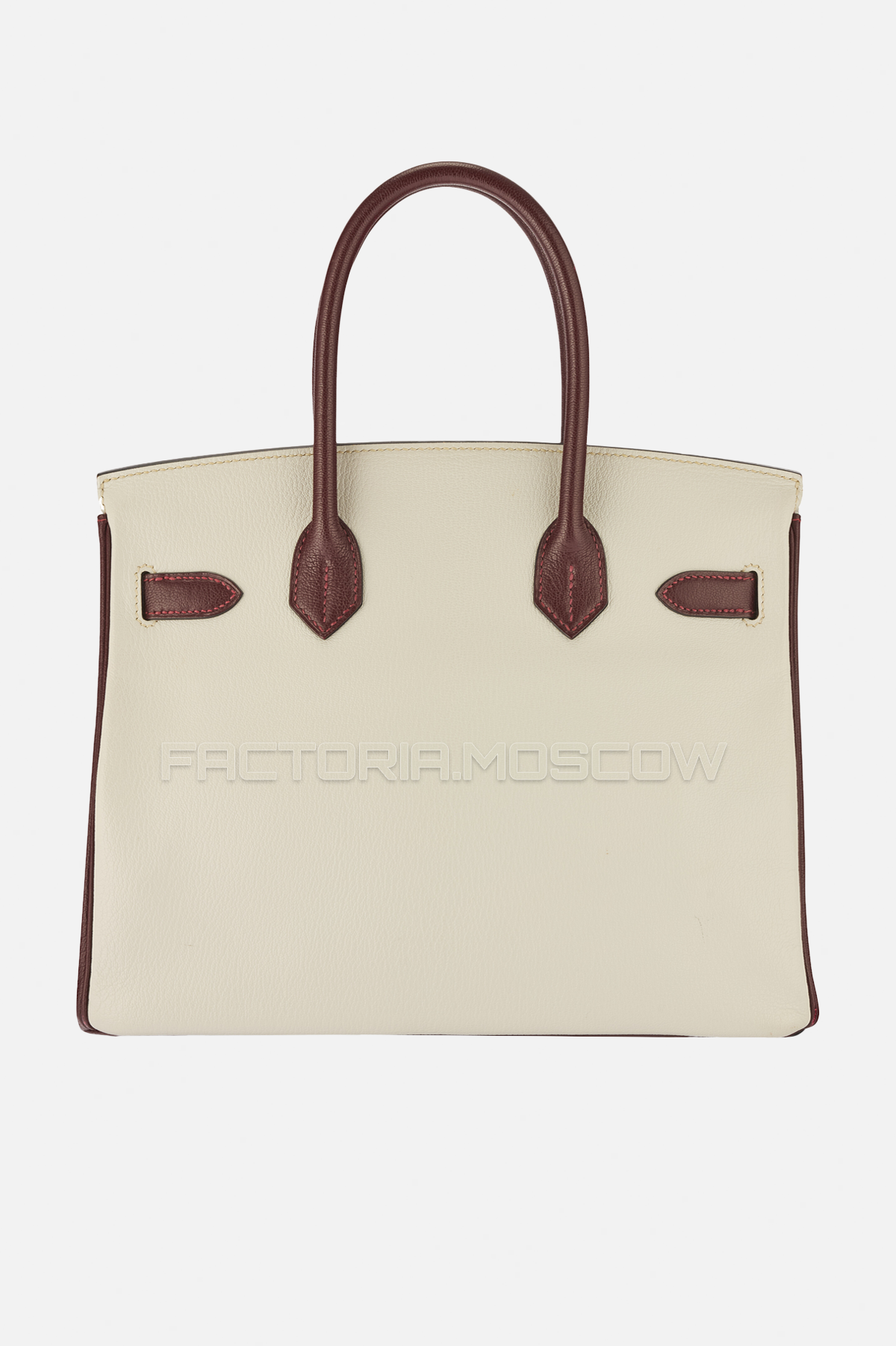Сумка Birkin 30 Chevre сделана с оригинала, где соответствует абсолютно все вплоть до серийного номера. Она изготавливается полностью вручную с использованием аутентичных материалов: французские вощеные нити Fil Au Chinois, Lin Cable; швейцарская фурнитура RiRi; импортная оригинальная кожа; покрытие фурнитуры драгоценным наполнением.