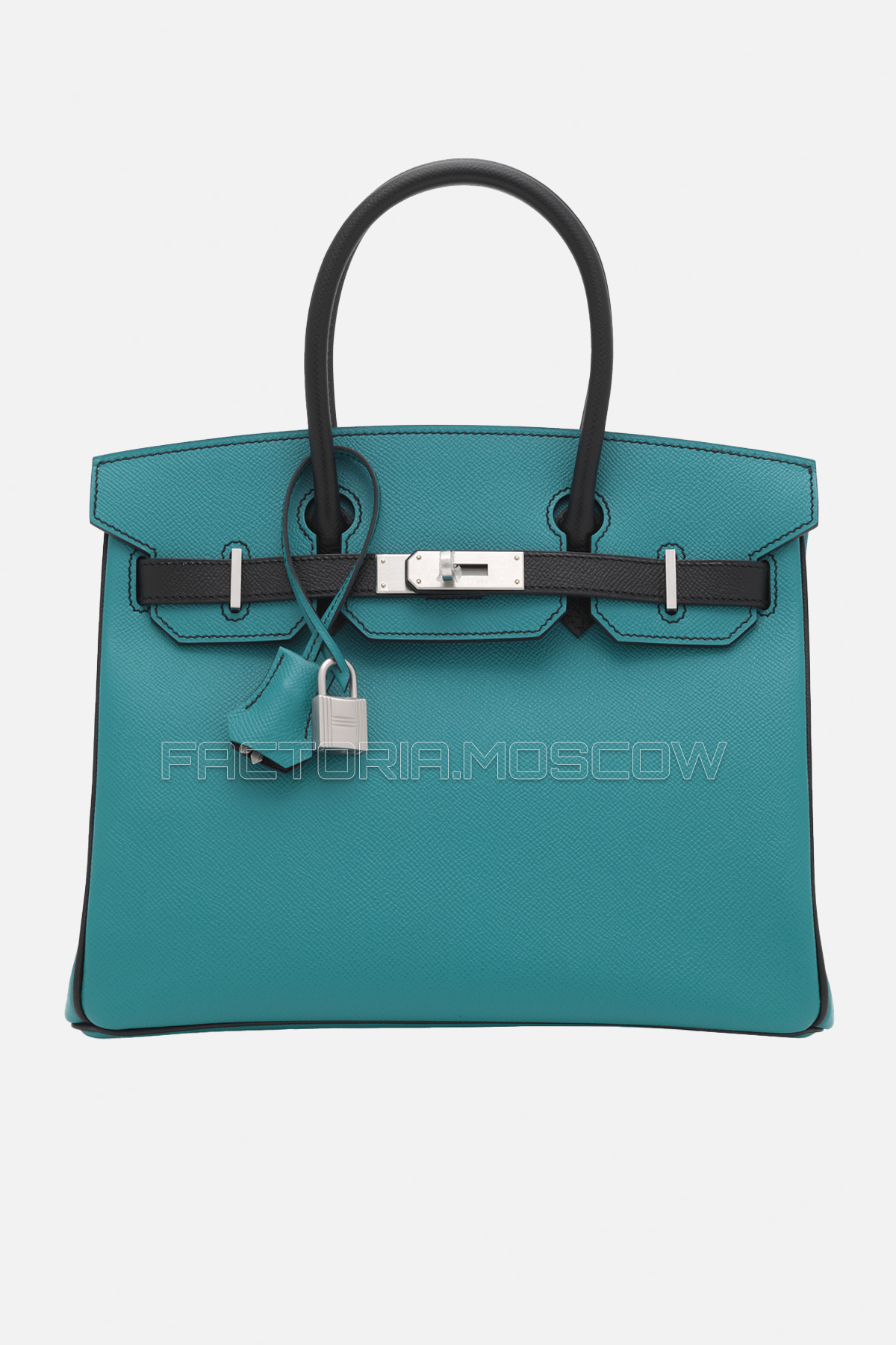Mы предлагаем эксклюзивное качество Hermes Birkin 30 Bleu Paon/Black Epsom With Brushed Palladium с гарантией идеального соответствия из 100% оригинальных материалов в комплекте бутика.