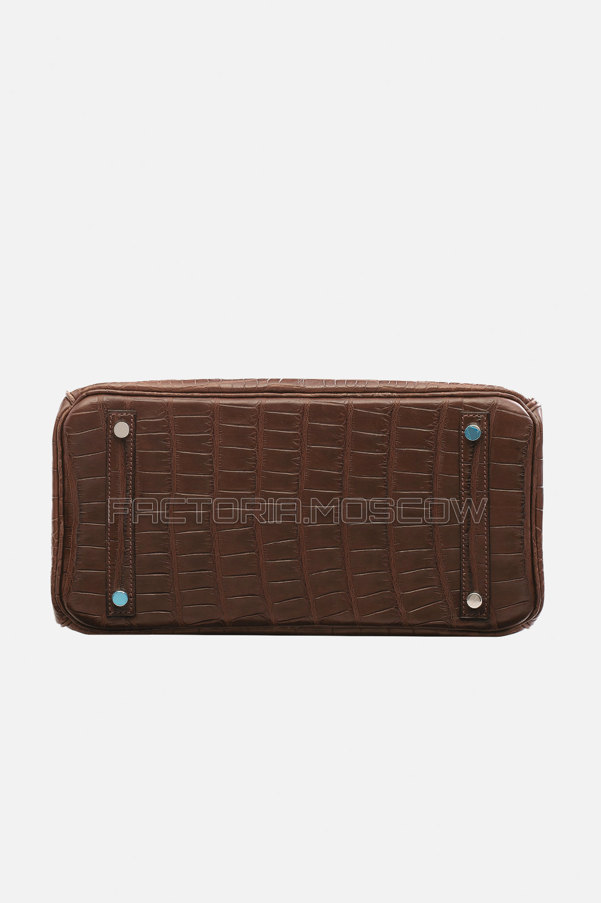 Производство фабрики настроено только под пошив сумок и аксессуаров Hermes, что позволило достичь наивысшего качества. Birkin 30 в цвете Havane — не просто аксессуар, а символ статуса и утонченного вкуса, который покоряет сердца ценителей роскоши по всему миру. Сумка выполнена из редкой и ценнейшей кожи аллигатора с матовой отделкой. Этот вид кожи не только отличается исключительной прочностью, но и уникальным внешним видом, который подчеркивает естественную красоту рисунка кожи. Матовая текстура добавляет изделию современный и изысканный вид, который привлекает внимание и восторг окружающих. Цветовая палитра Birkin представлена в изысканном оттенке Havane — это насыщенный и тёплый коричневый тон, который олицетворяет собой роскошь и благородство. Этот универсальный цвет легко сочетается с гардеробом, добавляя нотки аристократичности в любой ансамбль.