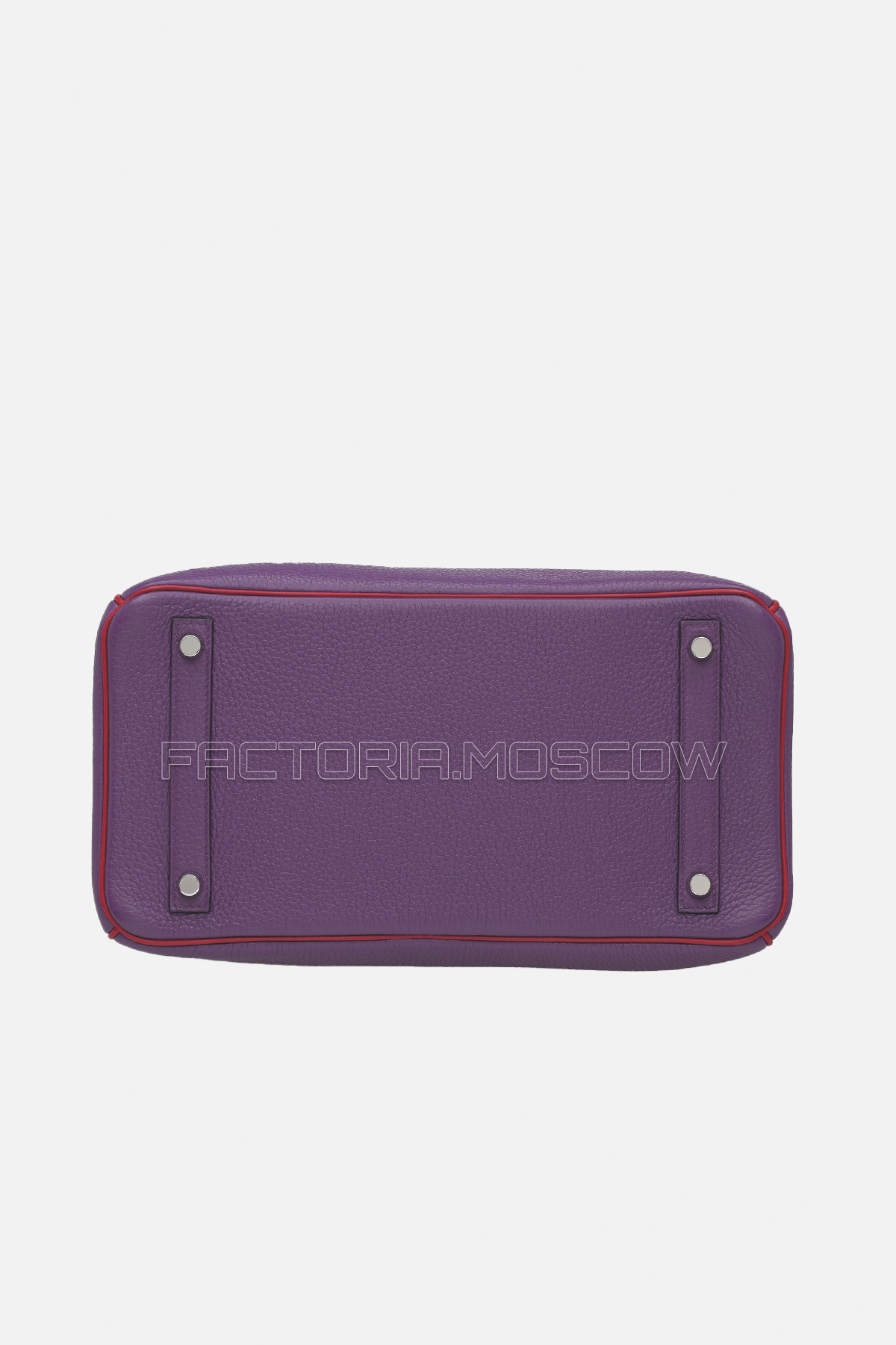 Внутреннее пространство фиолетовой Birkin 30 компактно, лаконично и выполнено из мягкой кожи Chevre. Вместительный основной отдел с карманом для организации мелочей и две ручки для ношения в руке или на сгибе локтя. Размеры сумки: длина — 30 см, высота — 22 см, глубина — 16 см.