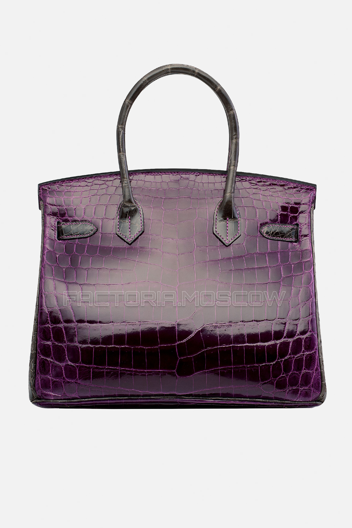 Mы предлагаем эксклюзивное качество Hermes Birkin 30 Shiny Amethyste/Graphite Niloticus Crocodile With Brushed GHW с гарантией идеального соответствия из 100% оригинальных материалов в комплекте бутика.