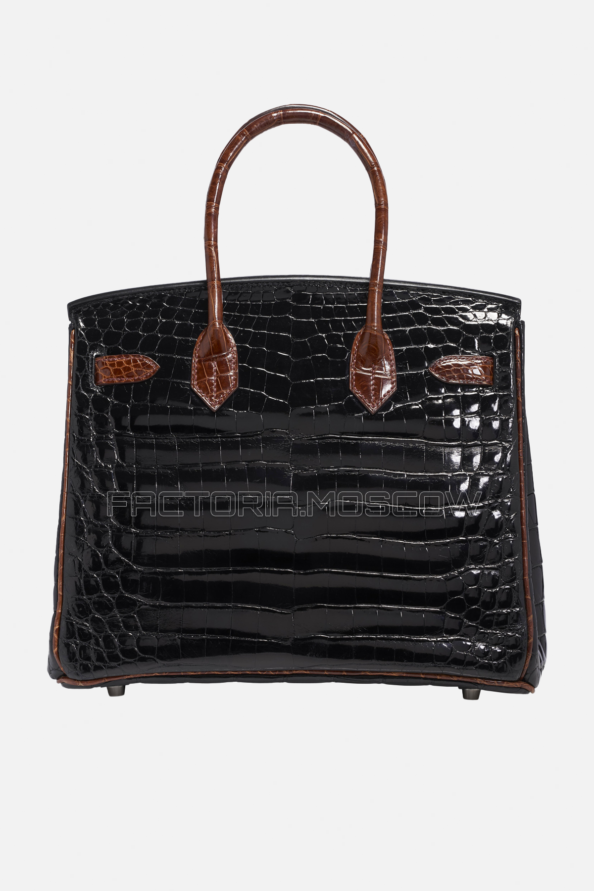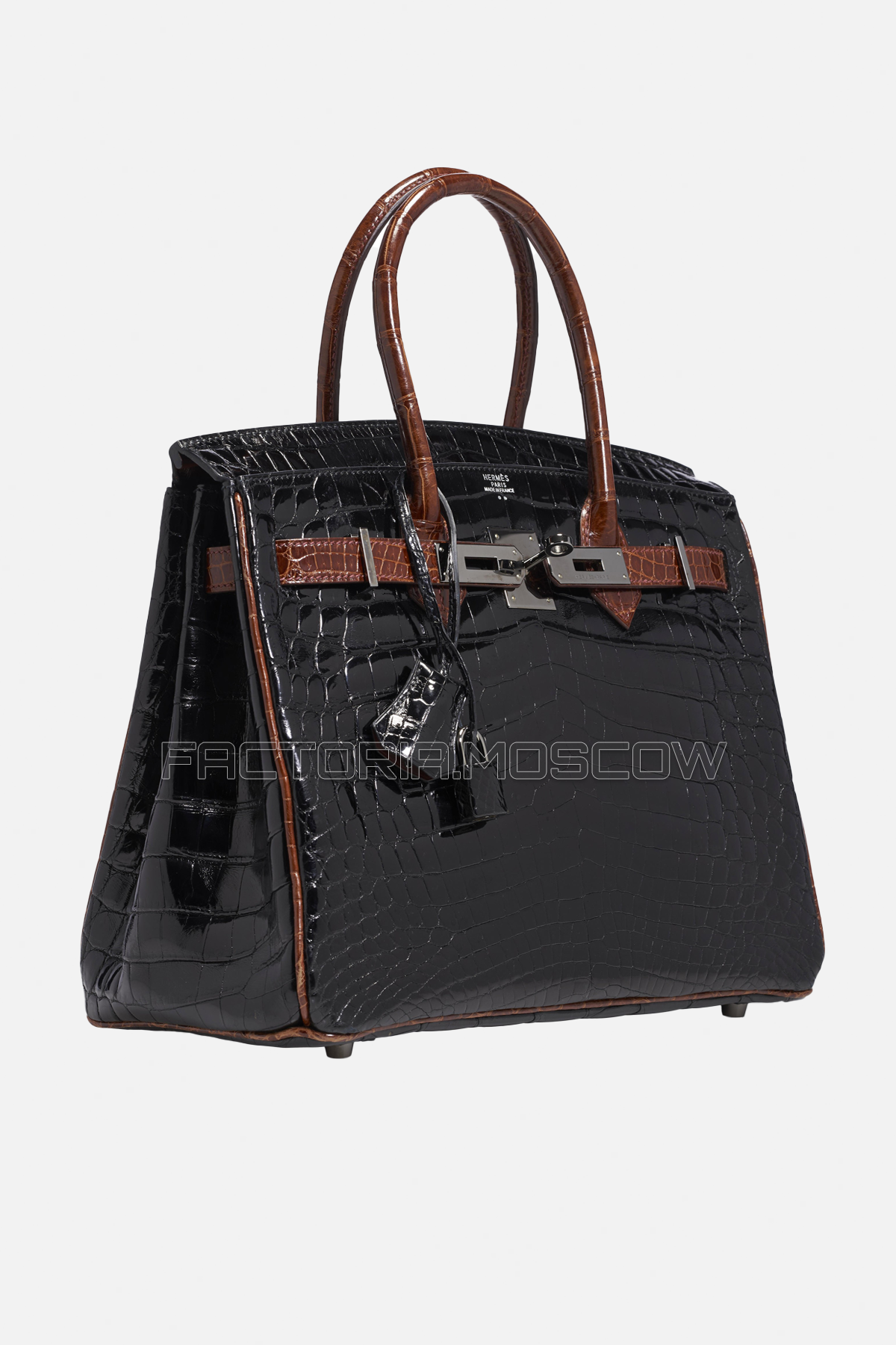 Mы предлагаем эксклюзивное качество Hermes Birkin 30 Shiny Black/Miel Niloticus Crocodile PHW с гарантией идеального соответствия из 100% оригинальных материалов в комплекте бутика.