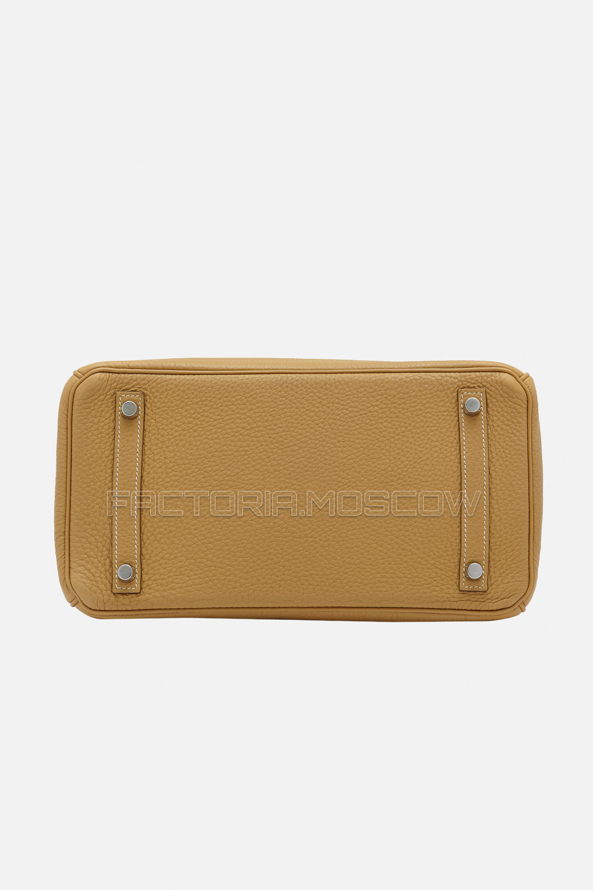 Внутреннее пространство бежевой Birkin 30 выполнено из мягкой кожи Chevre, обеспечивающей сохранность содержимого. Вместительный основной отдел без перегородок дополнен карманом для организации мелочей и двумя ручками для ношения в руке или на сгибе локтя. Размеры сумки: длина — 30 см, высота — 22 см, глубина — 16 см.