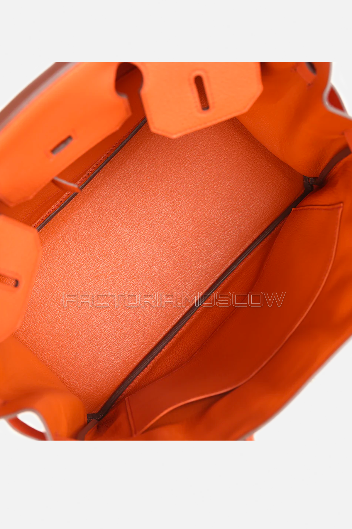 Внутреннее пространство оранжевой Birkin 30 Togo выполнено из мягкой кожи козы Chevre и организовано с максимальной практичностью: основное отделение дополнено карманом на молнии и открытым карманом для мелочей. Эргономичные ручки обеспечивают комфортное ношение в руке или на сгибе локтя. Размеры модели: 30 см x 22 см x 16 см.
