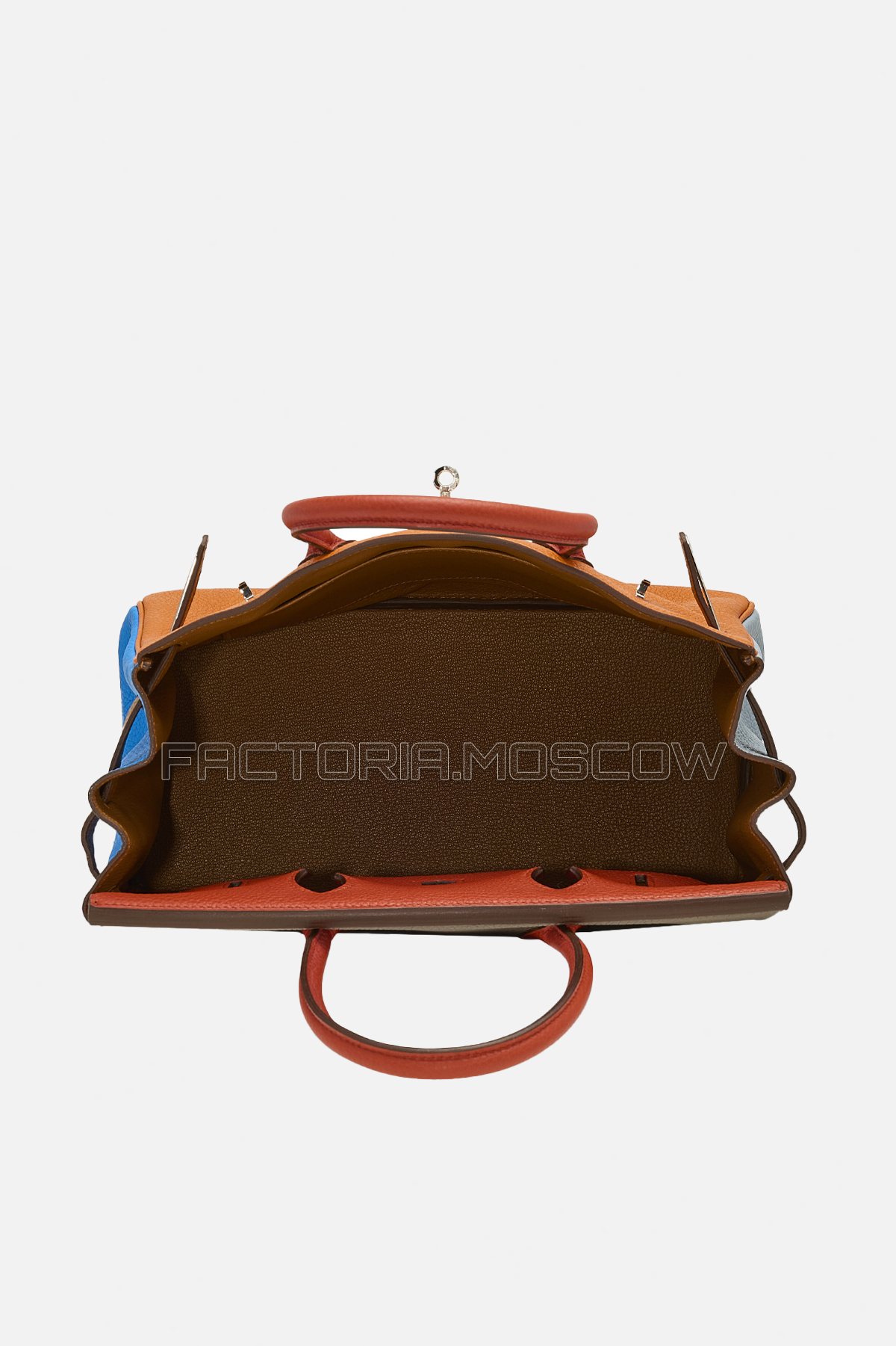 Mы предлагаем эксклюзивное качество Hermes Birkin Arlequin 30 Orange, Sanguine, Bleu Lin, Bleu Hydra, Étain, Gold Clemence PHW с гарантией идеального соответствия из 100% оригинальных материалов в комплекте бутика.