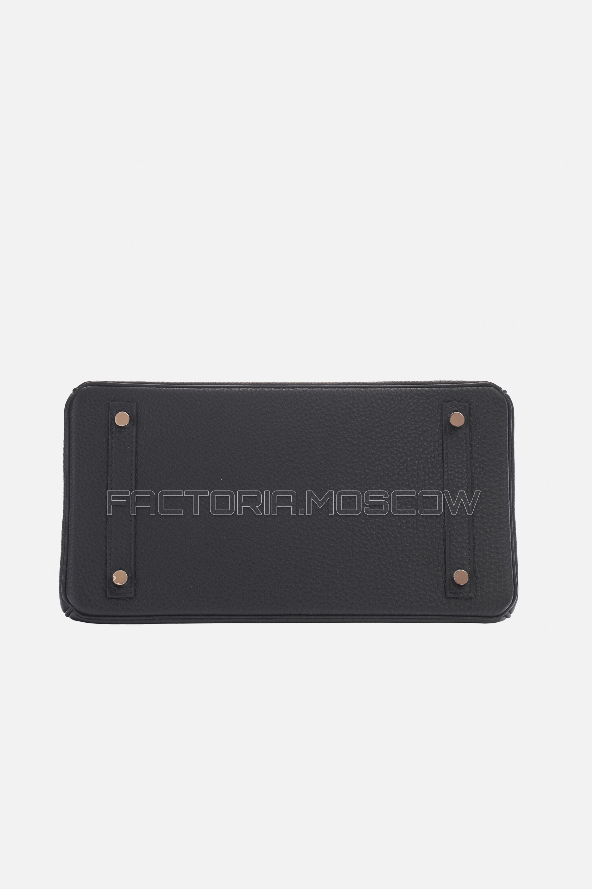 Отдельного внимания заслуживает фурнитура из розового золота Rose Gold (Rghw), которая добавляет шарма и изысканности всему изделию. Розовое золото прекрасно сочетается с черной кожей, создавая гармоничный и стильный ансамбль. Каждая деталь фурнитуры, от замков до ножек на дне сумки, выполнена с исключительной точностью, подчеркивая мастерство и внимание к деталям бренда Hermes.