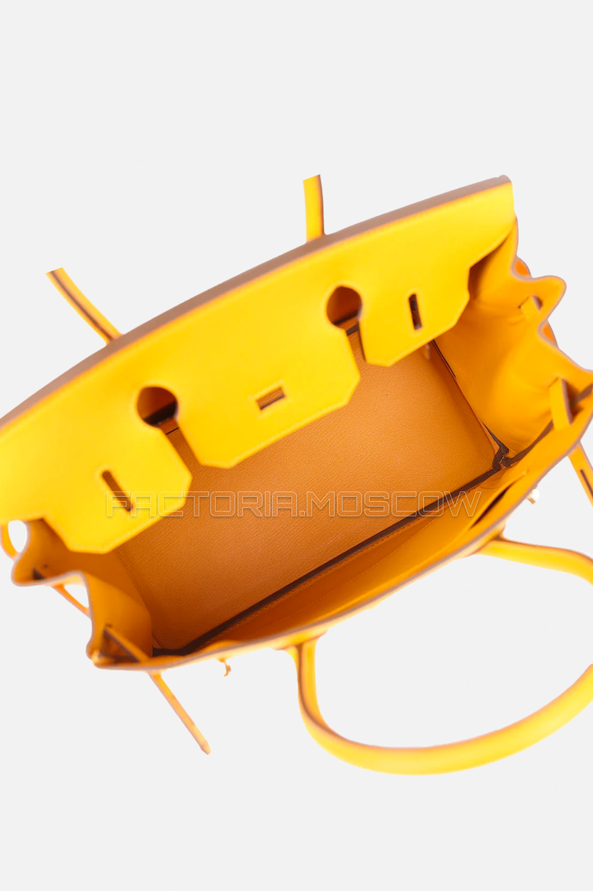 Внутреннее пространство желтой Birkin 30 Epsom компактно, лаконично и сделано из кожи козы Chevre. Вместительный основной отдел имеет два кармана для организации мелочей, один из которых на молнии, и две ручки для ношения в руке или на сгибе локтя. Размеры сумки: длина — 30 см, высота — 22 см, глубина — 16 см.