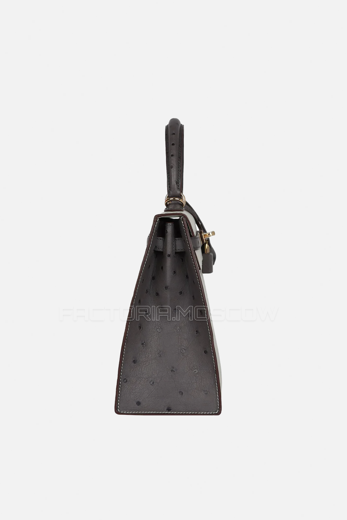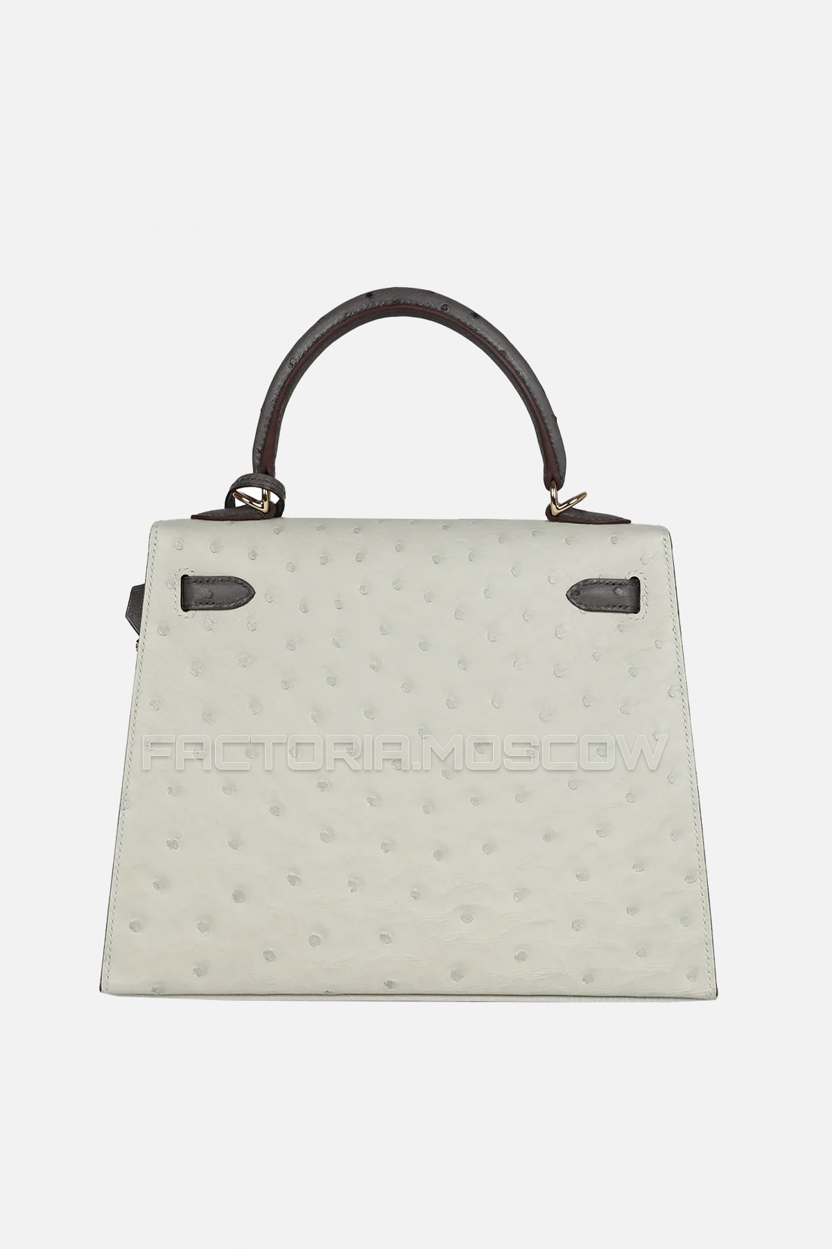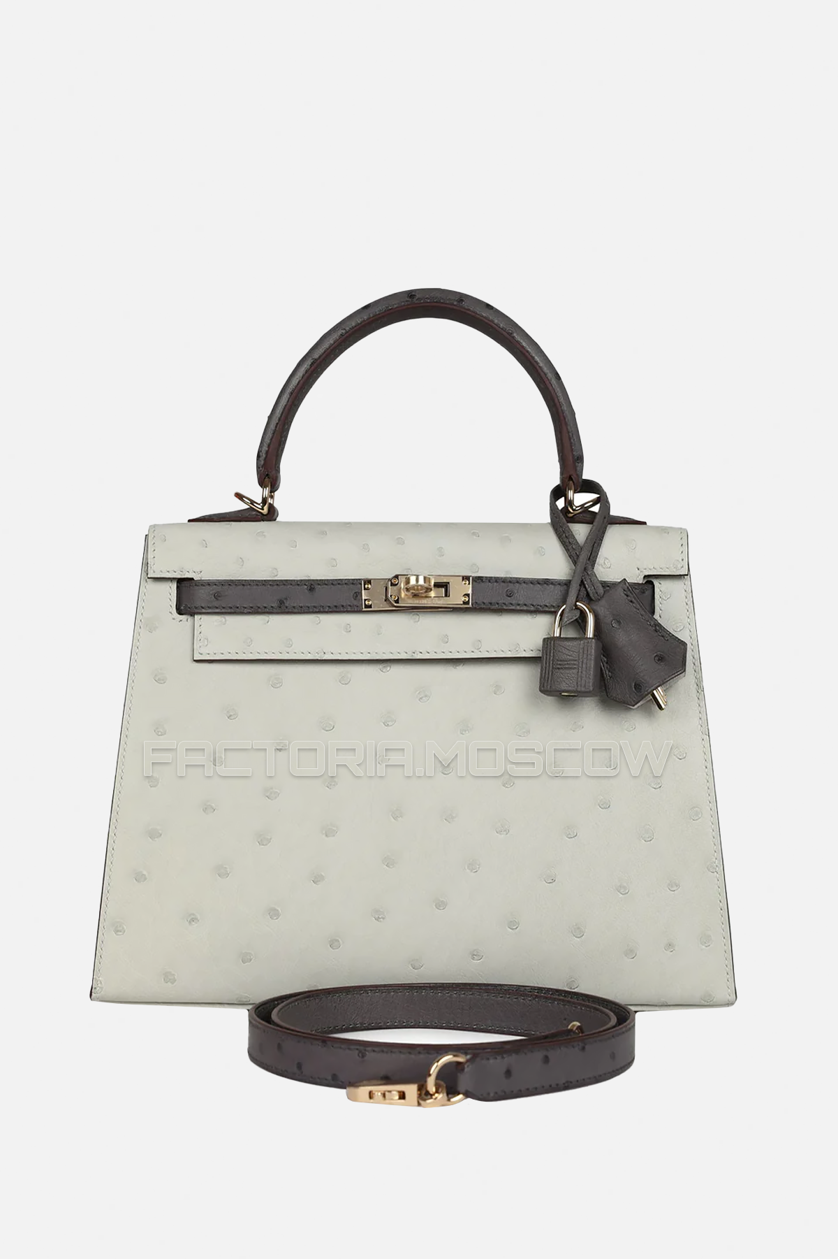 Kelly 25 Ostrich in Gris Perle/Graphite — The embodiment of luxury and sophistication, ideal for true connoisseurs of high-quality accessories.