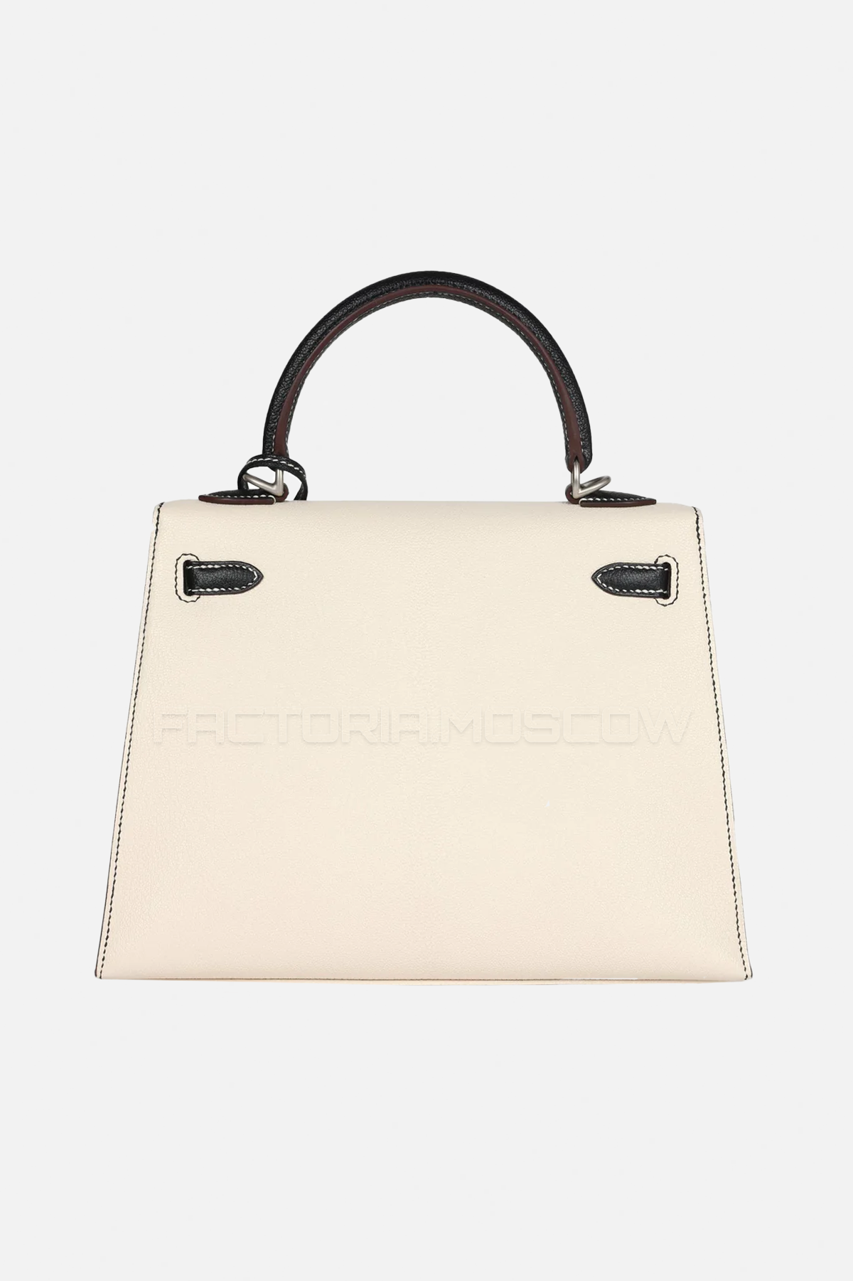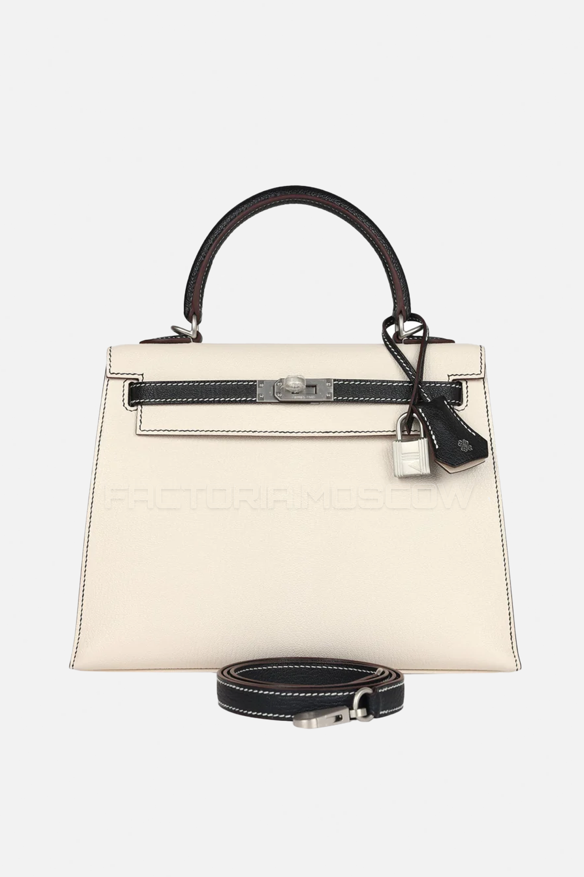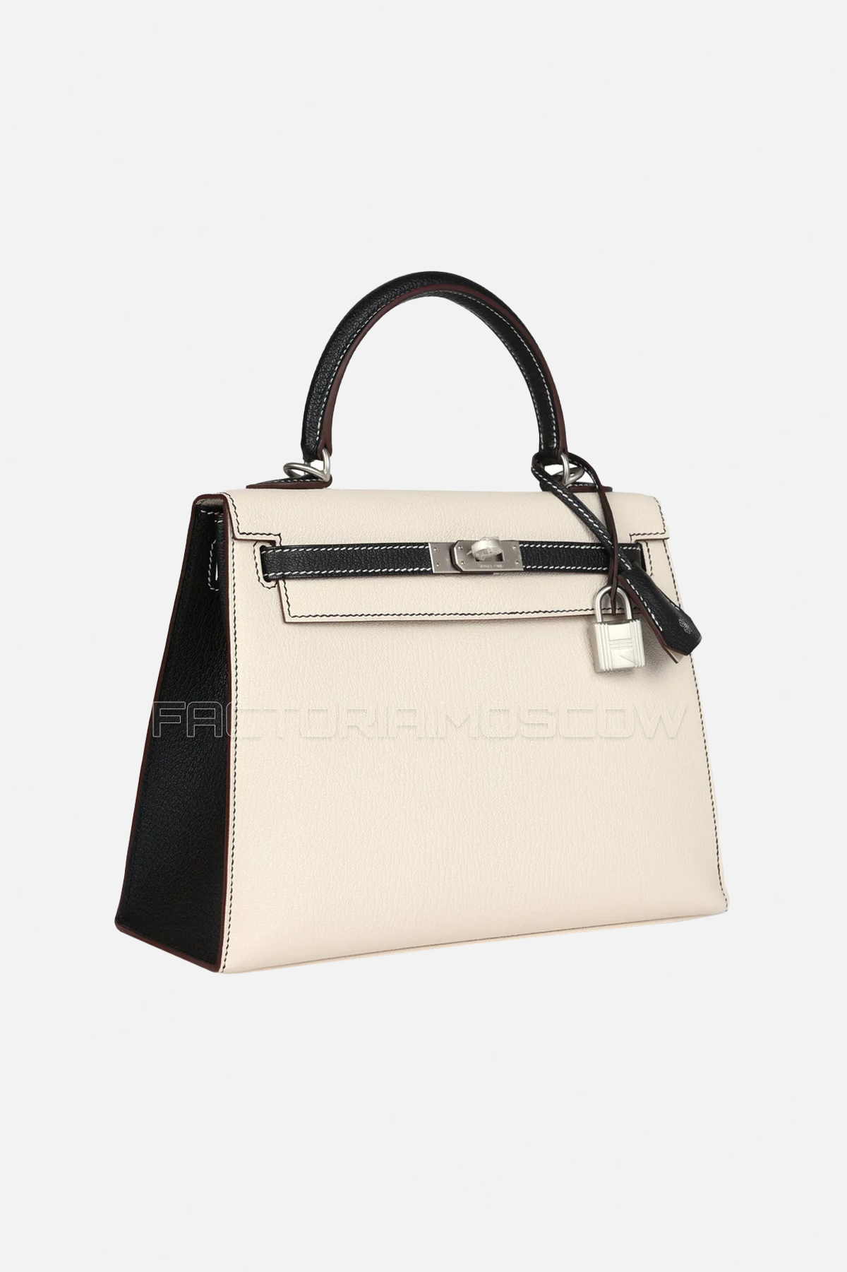 Hermès HSS Kelly Sellier 25 Nata/Black Chevre Mysore Brushed PHW в наличии и под заказ в эксклюзивном качестве из 100% оригинальных материалов в полном комплекте бутика.