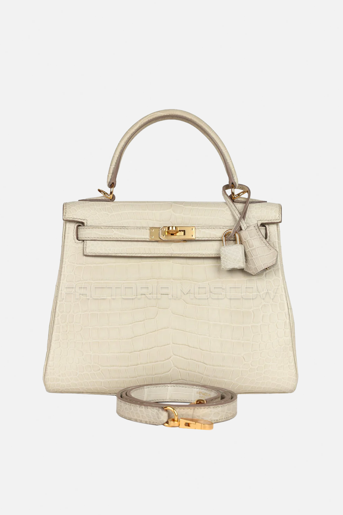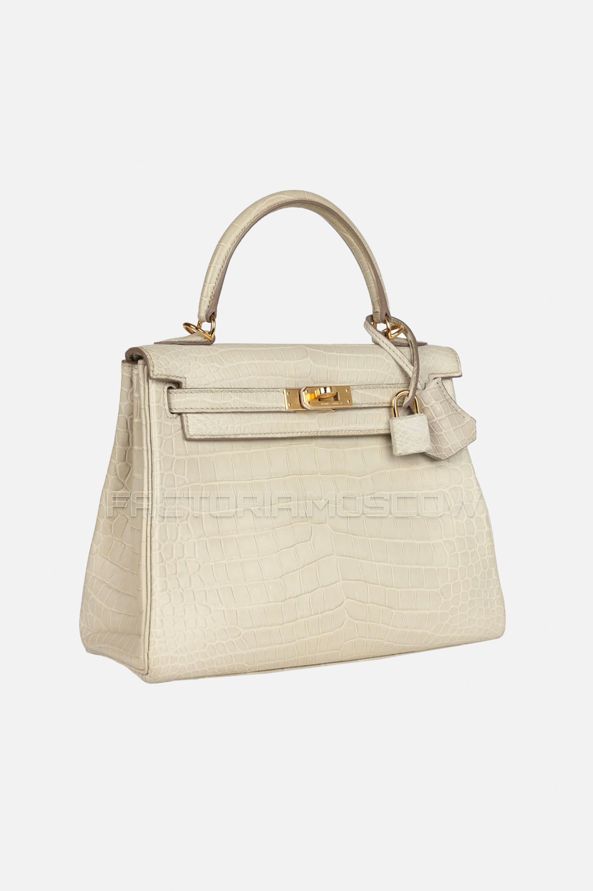 Hermès Kelly Retourne 25 Beton Matte Alligator GHW in stock and on order in exclusive quality from 100% original materials in a full boutique set.