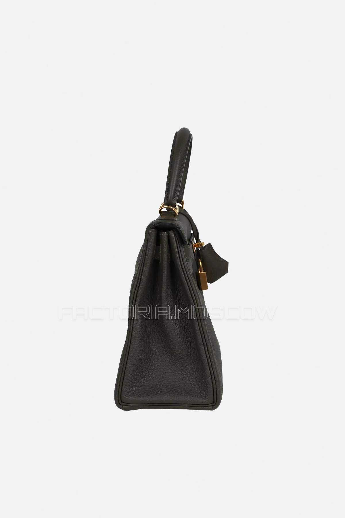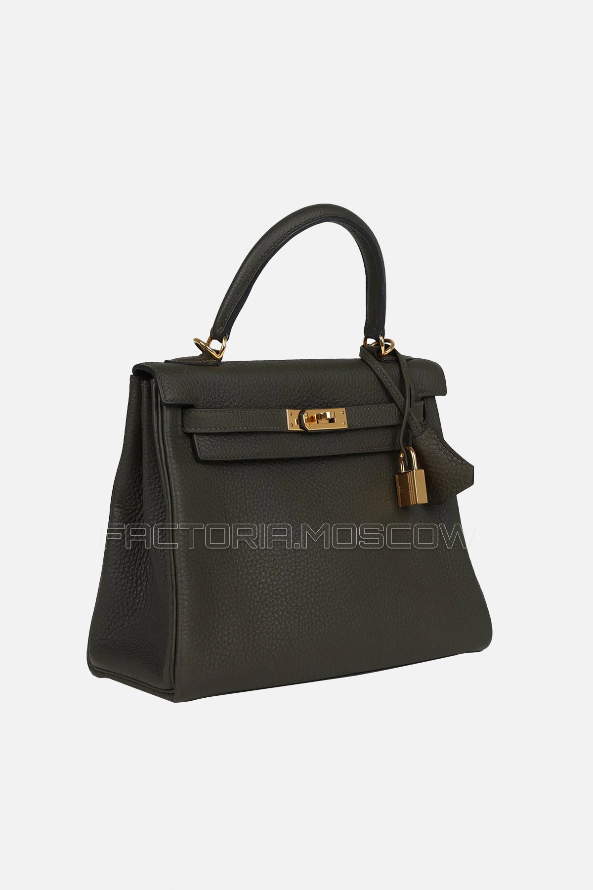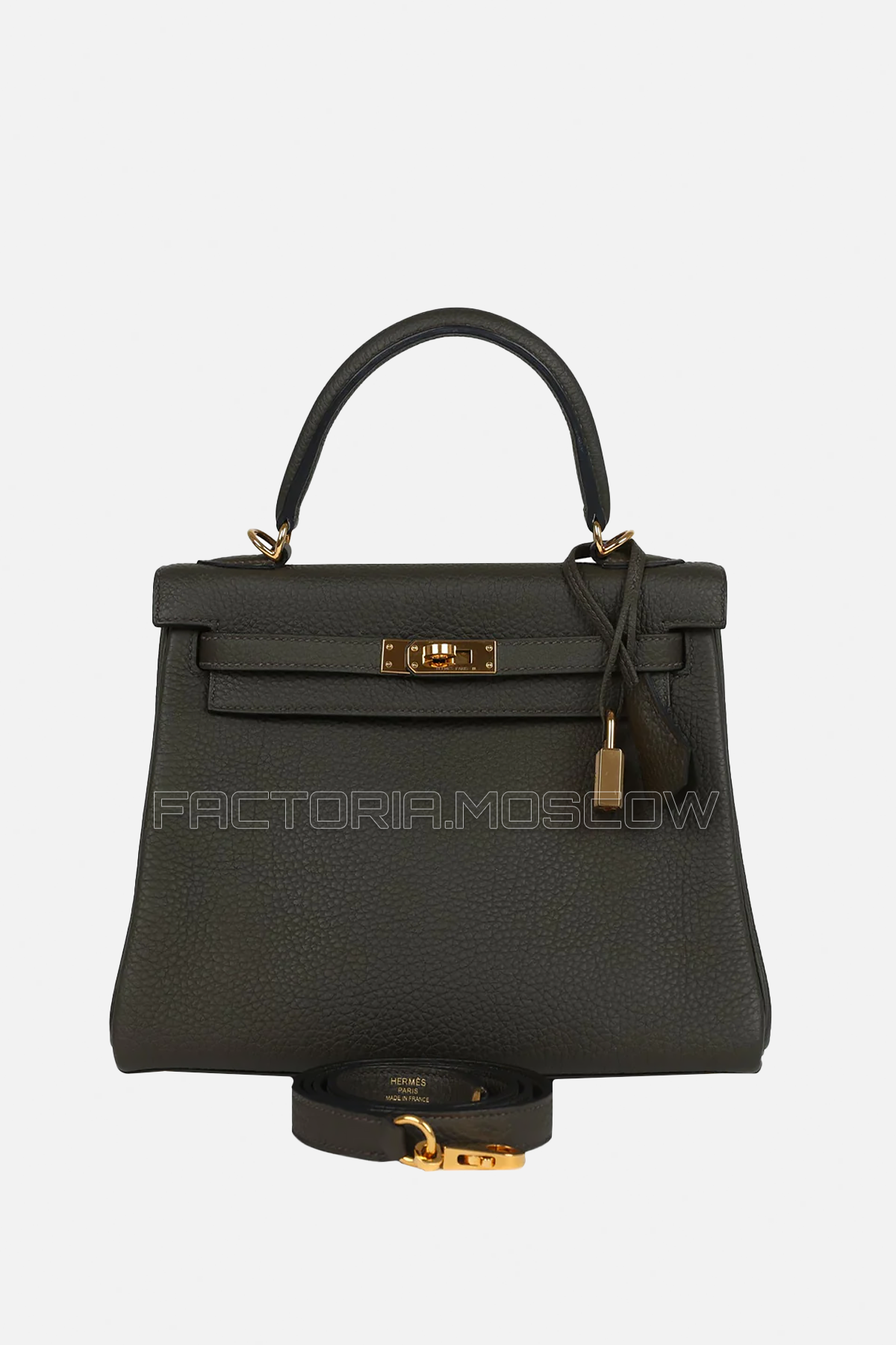 Hermès Kelly Retourne 25 Vert De Gris Togo GHW in stock and on order in exclusive quality from 100% original materials in a full boutique set.