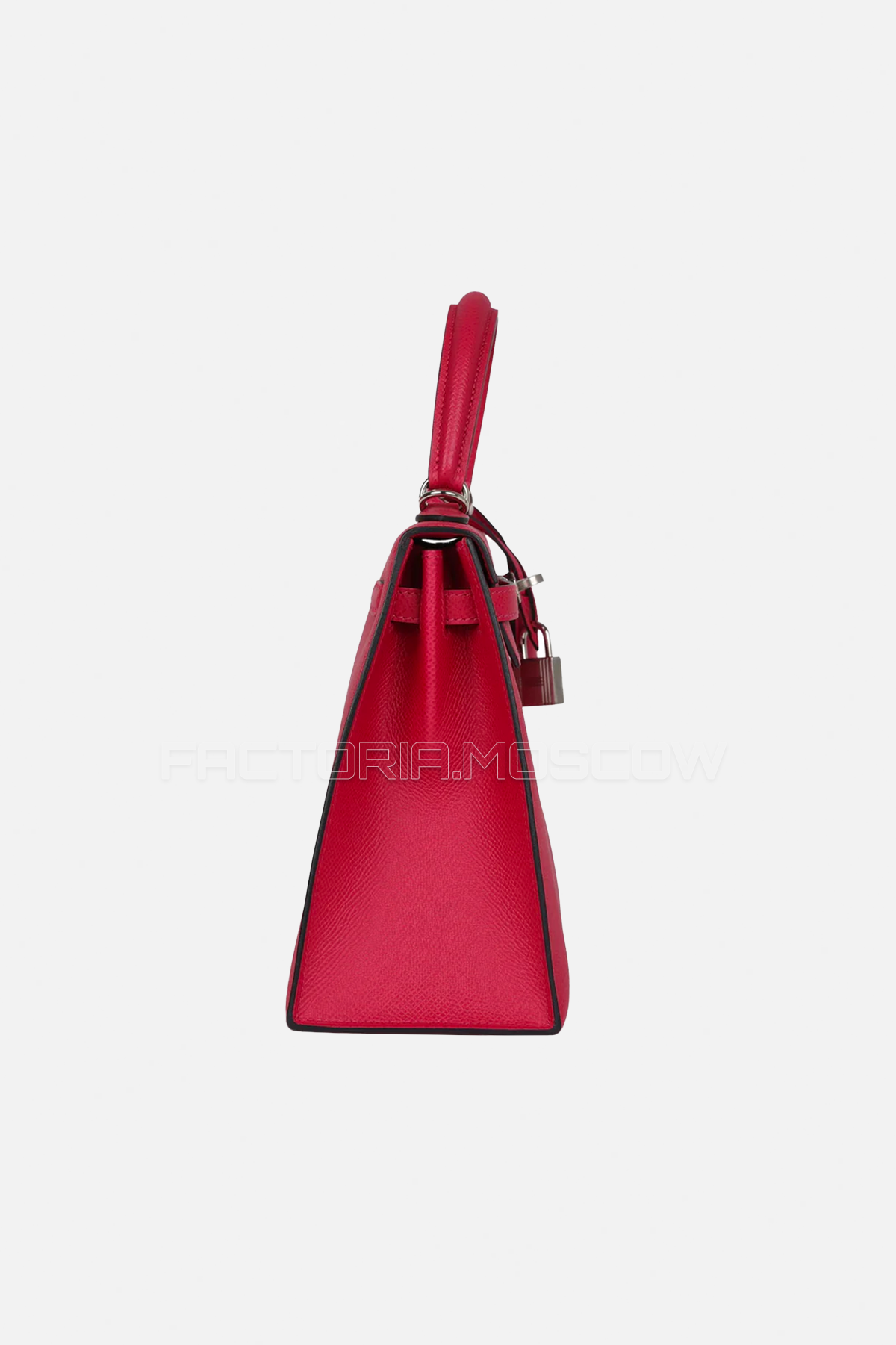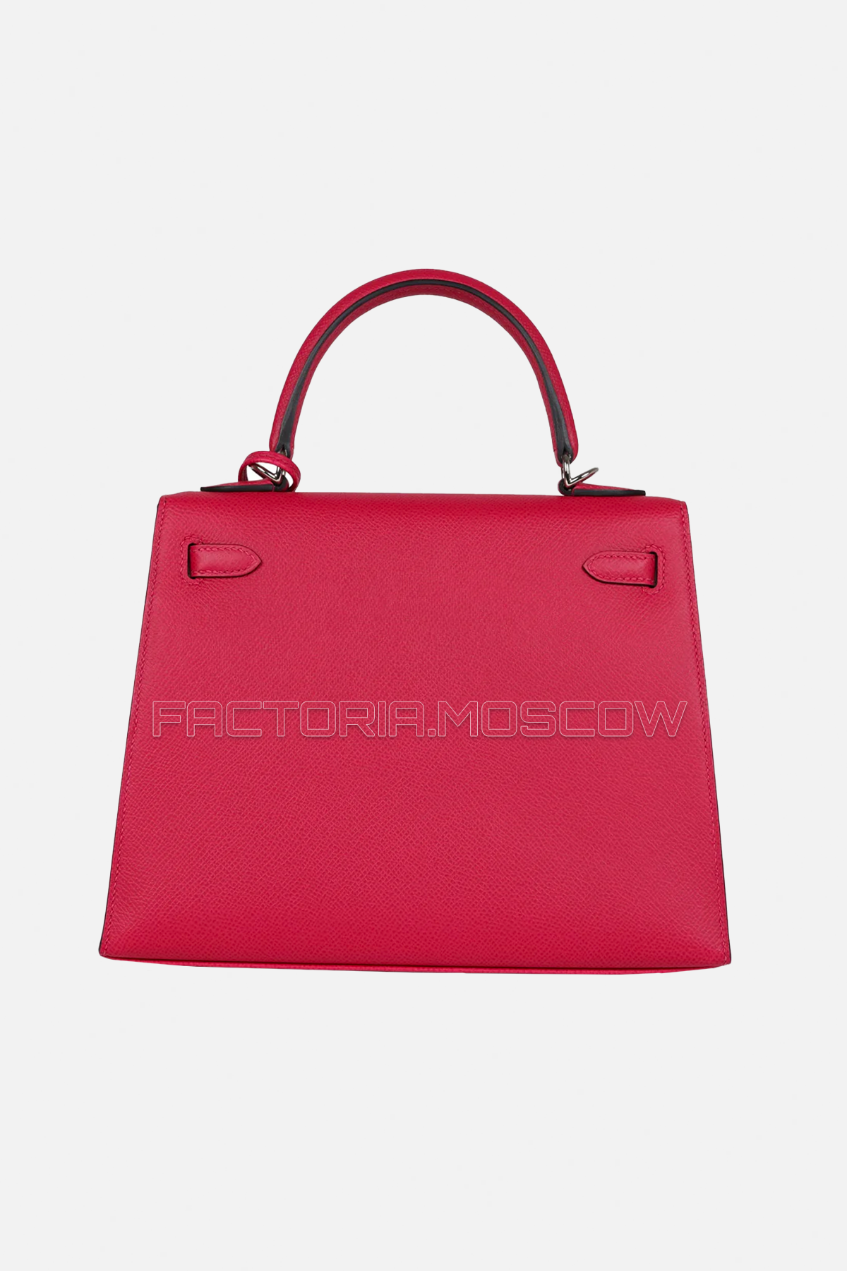 Hermès Kelly Sellier 25 Framboise Epsom PHW in stock and available to order in exclusive quality from 100% original materials in a full boutique set.