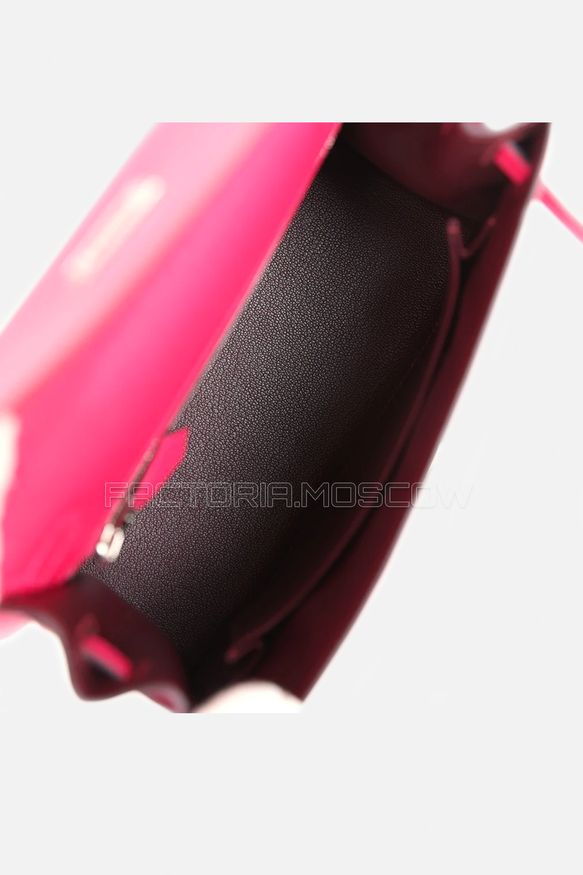 The interior of the pink Kelly Sellier 25 is made of soft Chevre goat leather and is organized with maximum practicality: the main compartment is complemented by a zipped pocket and an open pocket for small items. Convenient internal organization allows you to store all your essentials, and an elegant lock with a branded key ensures reliability and security.