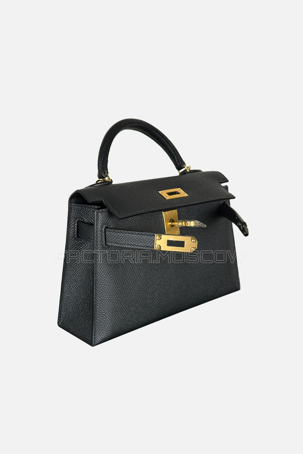 The Kelly Mini II 20 Epsom bag in Black is an exact miniature copy of the structured Kelly Sellier with hard sharp corners and a removable shoulder strap. Unlike the big Kellys, this baby does not include a lock with keys in its set. The inner compartment is made of Chevre goat leather, there is one open pocket. This model is a real work of art, which is definitely an object of desire and a 100% sign of luxury. After all, the smaller the Hermes bag, the higher its cost and the little Kelly Mini is clear evidence of this. It perfectly emphasizes the exquisite taste of the lucky owner. The Hermes Mini image bag is perfect for parties and social events.