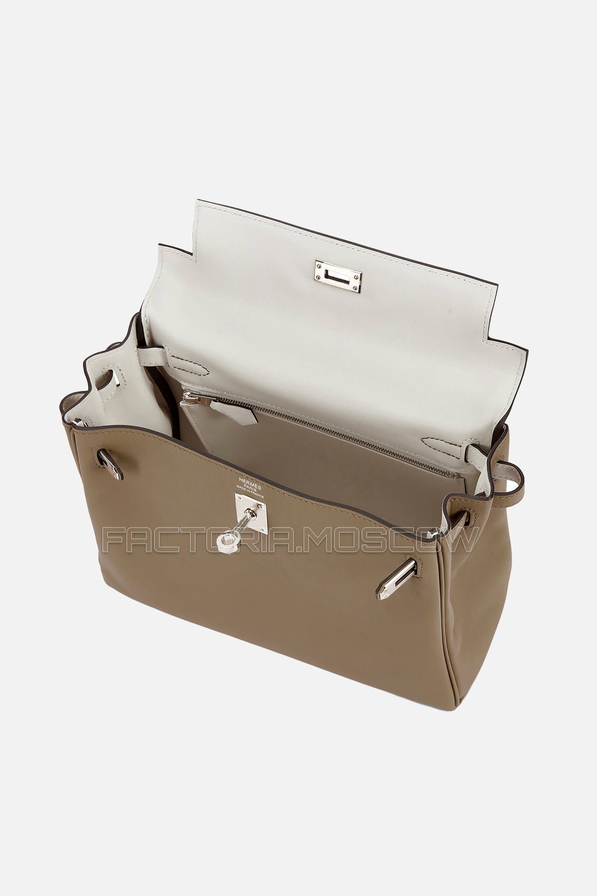 Срок изготовления двухцветной бежевой Kelly 25 Swift — 1-1,5 месяцев. Каждая сумка проходит два контроля качества, проверяется каждая деталь, на выходе вы получаете идеальное соответствие оригиналу без малейших отличий. Все материалы подлинные: французские вощеные нити Fil Au Chinois, Lin Cable; швейцарская фурнитура RiRi; импортная оригинальная кожа HAAS.