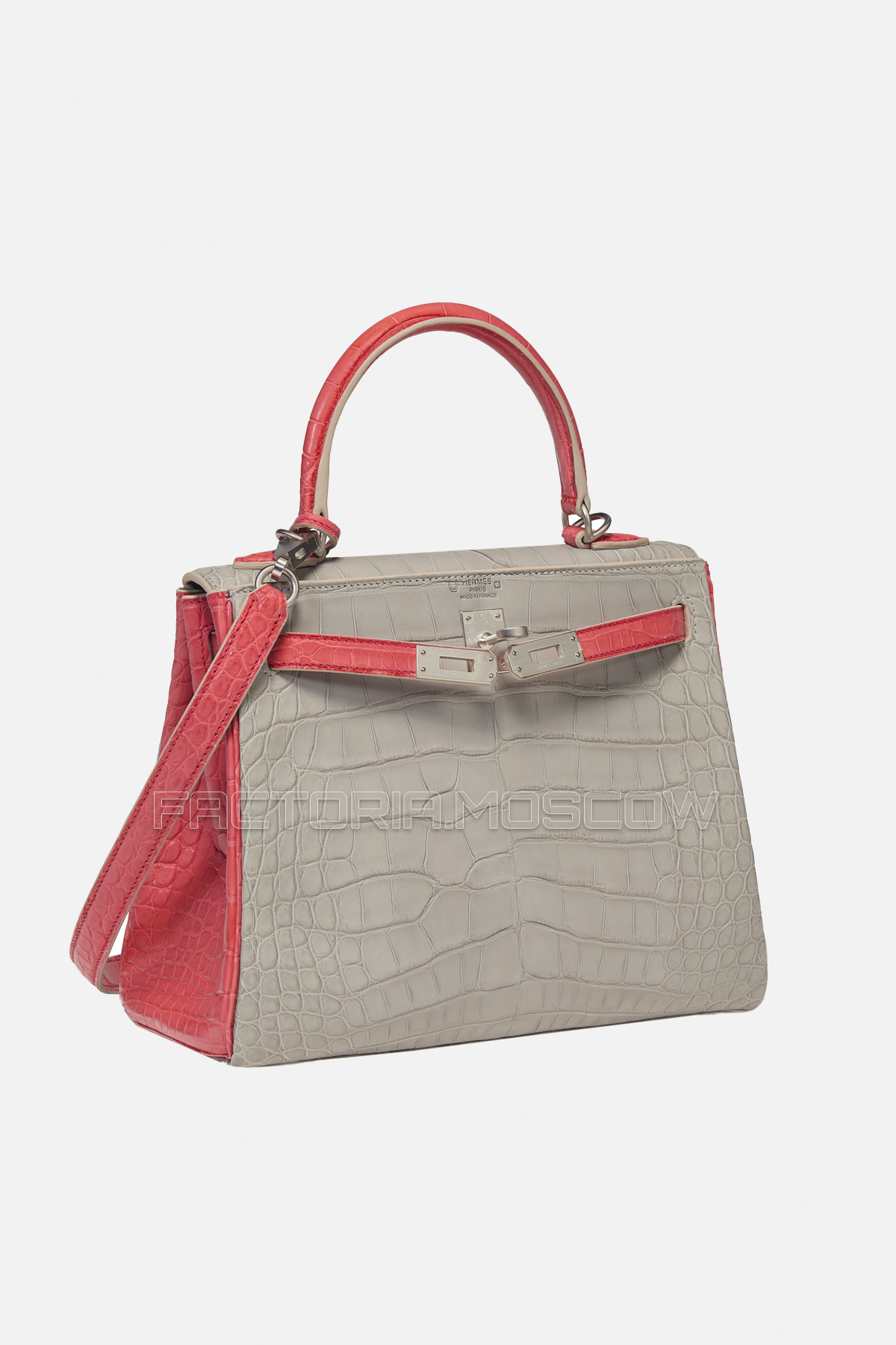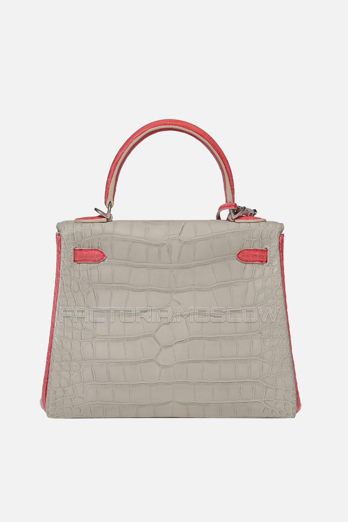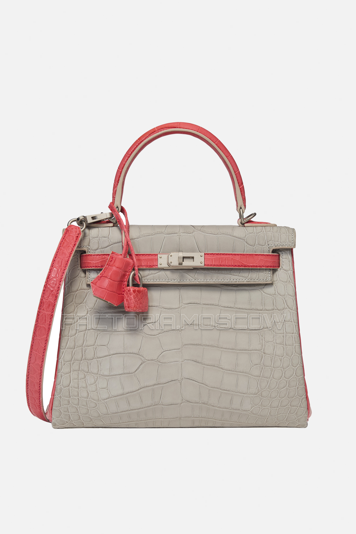 Kelly Retourne 25 Alligator в цветах Gris Perle/Rose Extreme олицетворяет собой истинное мастерство наших чудо профессионалов, сочетая в себе изысканный дизайн, редкие материалы и уникальную фурнитуру, привлекающую внимание самых взыскательных ценителей.