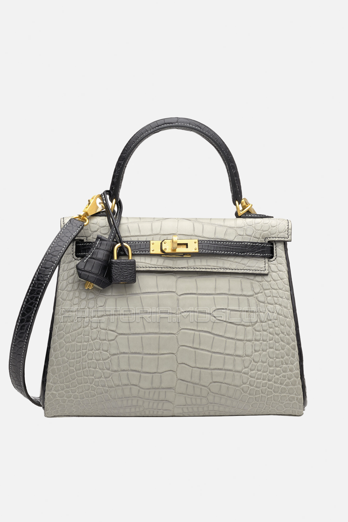 Kelly Retourne 25 Matte Alligator в цветах Gris Perle/Black — это образец идеального сочетания классики и современности. Мягкий силуэт создается благодаря уникальной технике пошива Retourne, которая придает изделию более расслабленный, но в то же время утонченный вид.