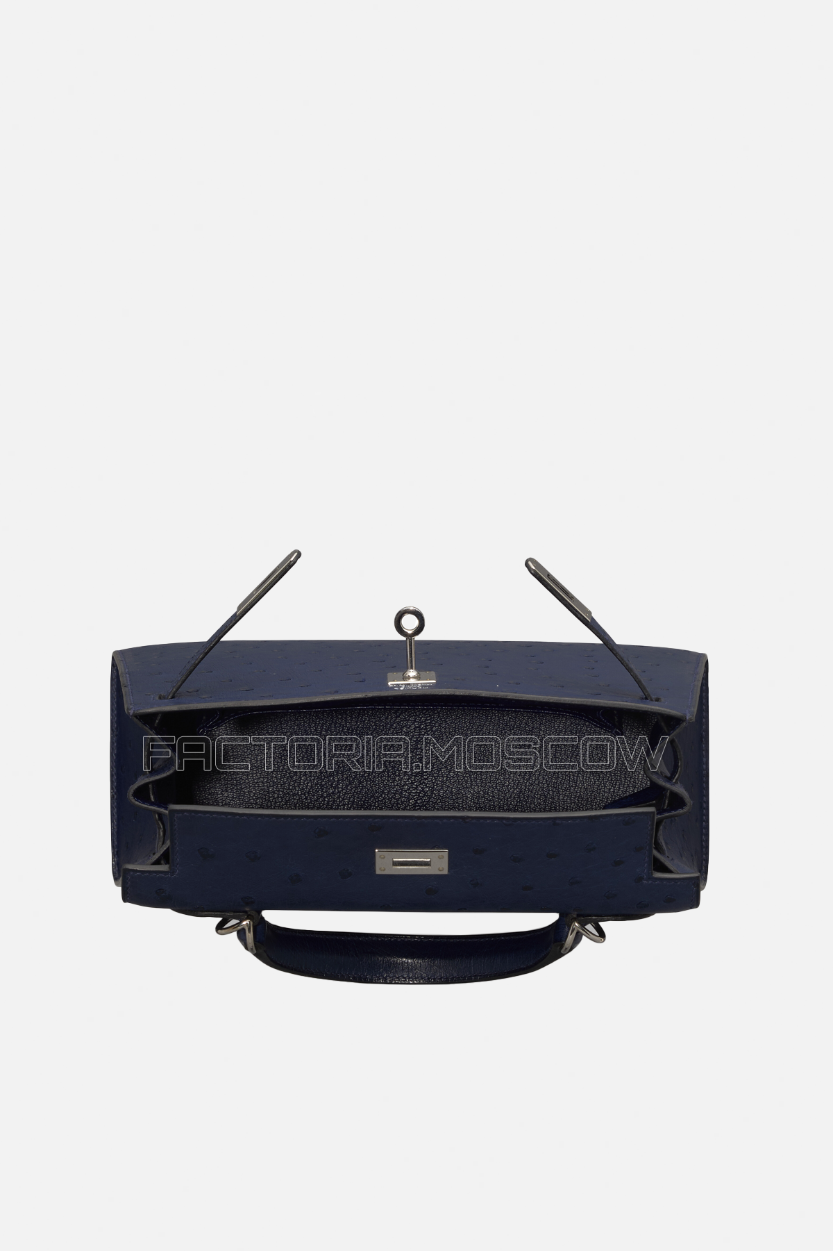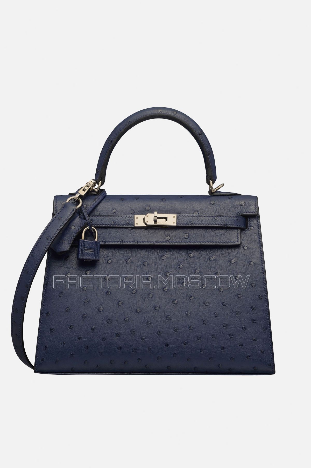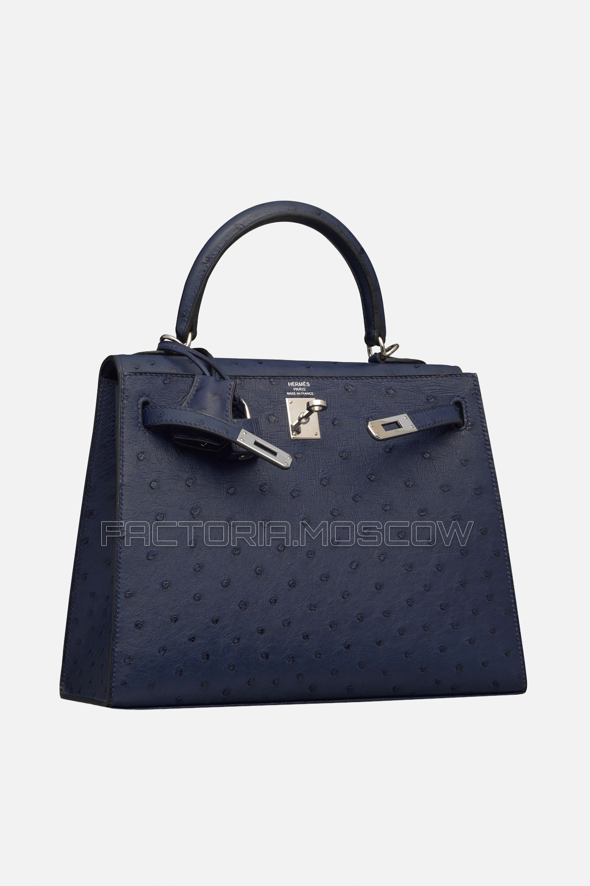 Hermes Kelly Sellier 25 Bleu Indigo Ostrich PHW в наличии и под заказ в эксклюзивном качестве из 100% оригинальных материалов в полном комплекте бутика.