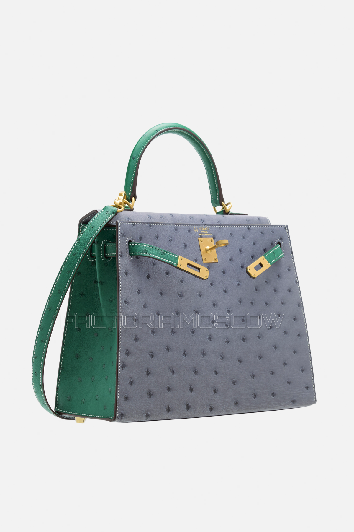 Мы предлагаем идеальное соответствие Hermes Kelly Sellier 25 Gris Agate/Vert Vertigo Ostrich Brushed GHW из 100% оригинальных материалов в комплекте бутика.
