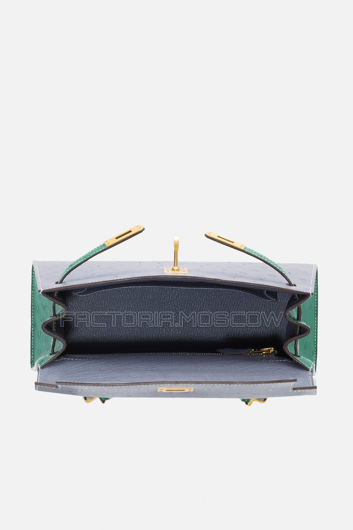 Kelly Retourne 25 Ostrich в цветах Gris Agate/Vert Vertigo — истинное воплощение роскоши и утонченности, которая станет ярким акцентом в вашем гардеробе. Она отличается строгими линиями и архитектурной четкостью формы. Откидной клапан с замком и прилагаемым ремешком позволяет носить сумку как в руке, так и на плече.
