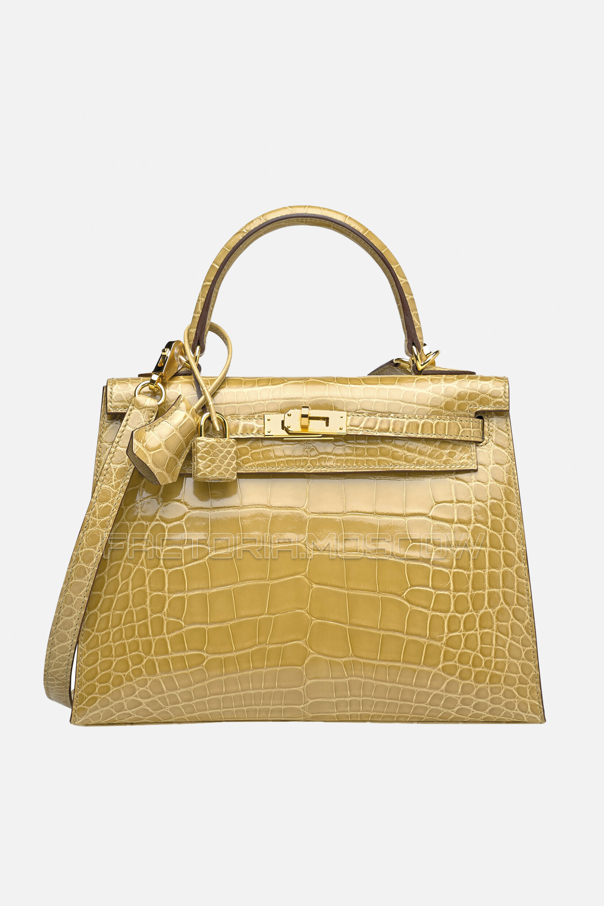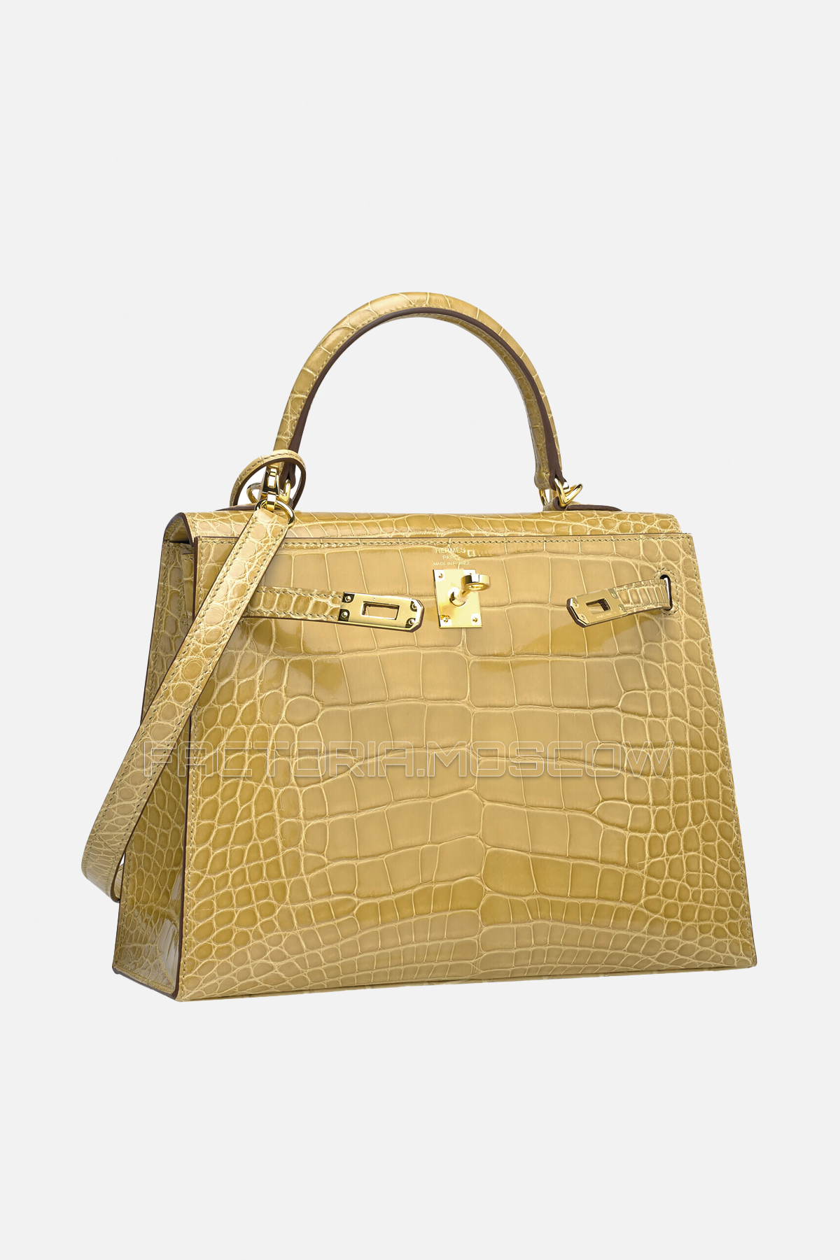 Мы предлагаем идеальное соответствие Hermes Kelly Sellier 25 Shiny Alligator Beige Sable GHW из 100% оригинальных материалов в комплекте бутика.