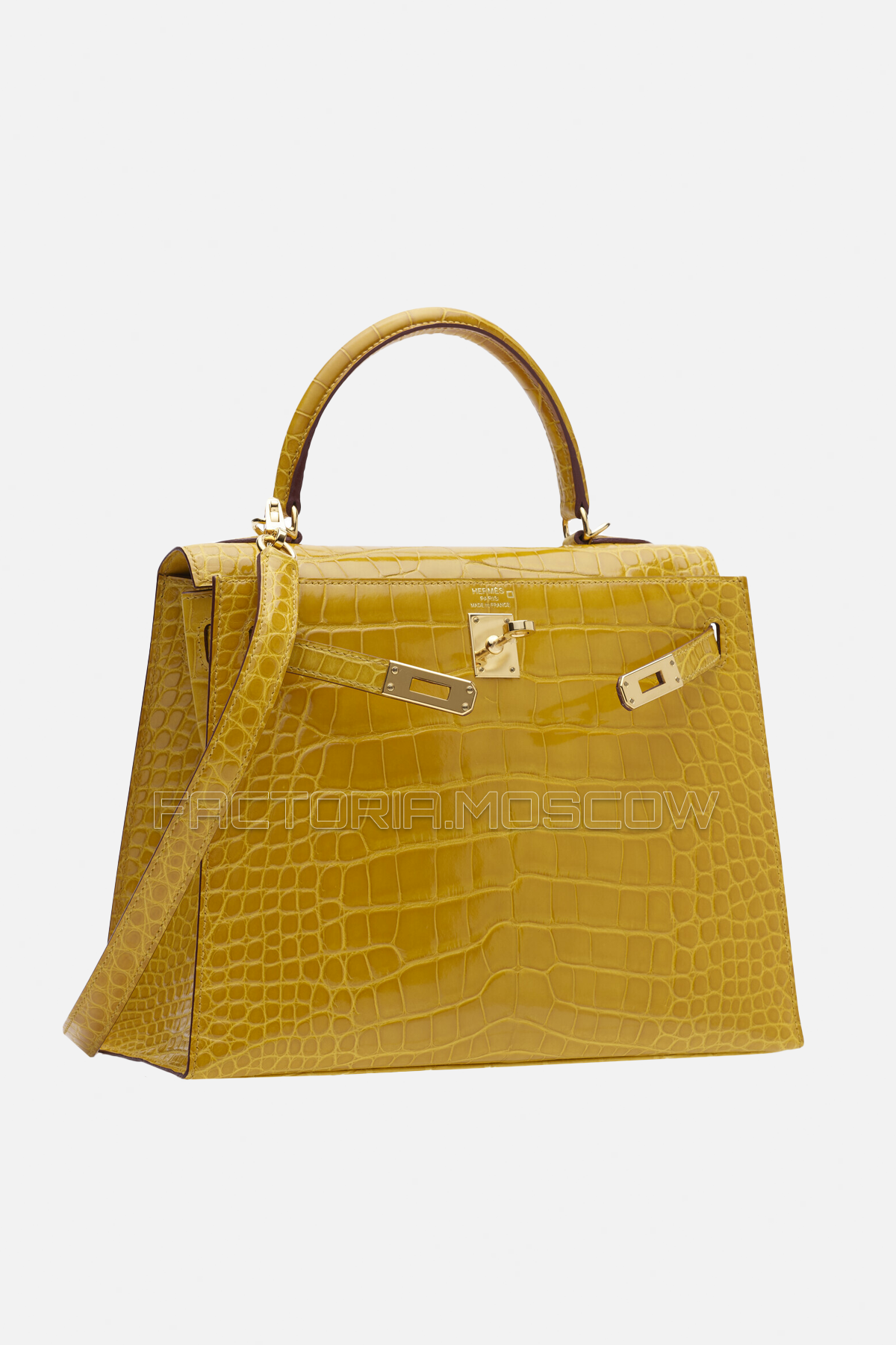 Hermes Kelly Sellier 25 Shiny Alligator Jaune Ambre GHW в наличии и под заказ в эксклюзивном качестве из 100% оригинальных материалов в полном комплекте бутика!