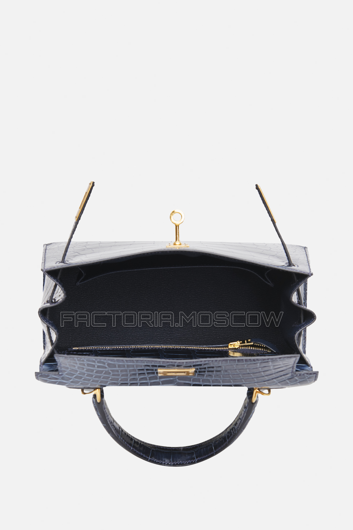 Kelly Sellier 25 Alligator в цвете Bleu Baltique — это образец аккуратности и функциональности. Строгие линии, четкие углы и безупречное исполнение швов демонстрируют высочайший уровень мастерства.