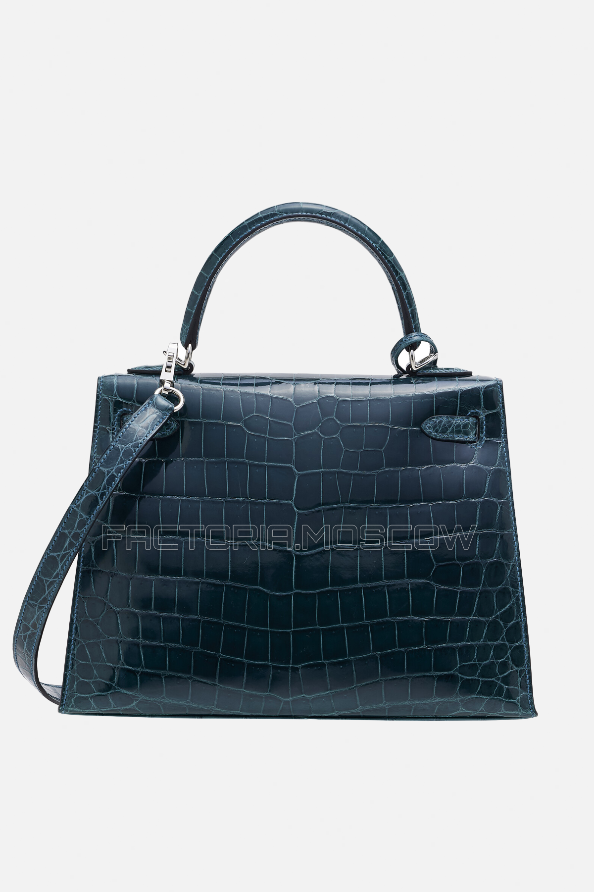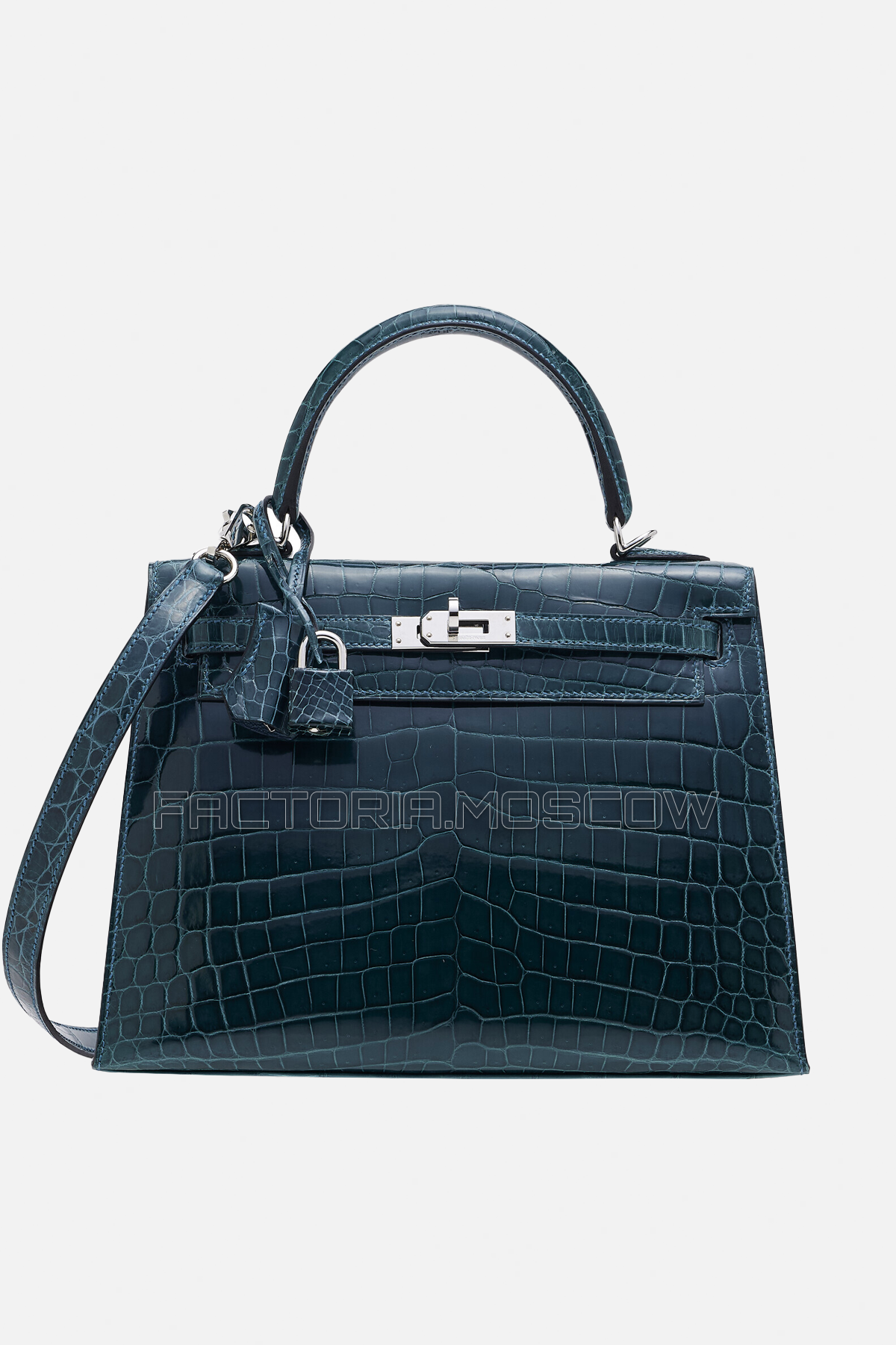 Kelly Sellier 25 Crocodile в цвете Bleu Colvert является настоящим шедевром для истинных ценителей исключительного дизайна Hermes.