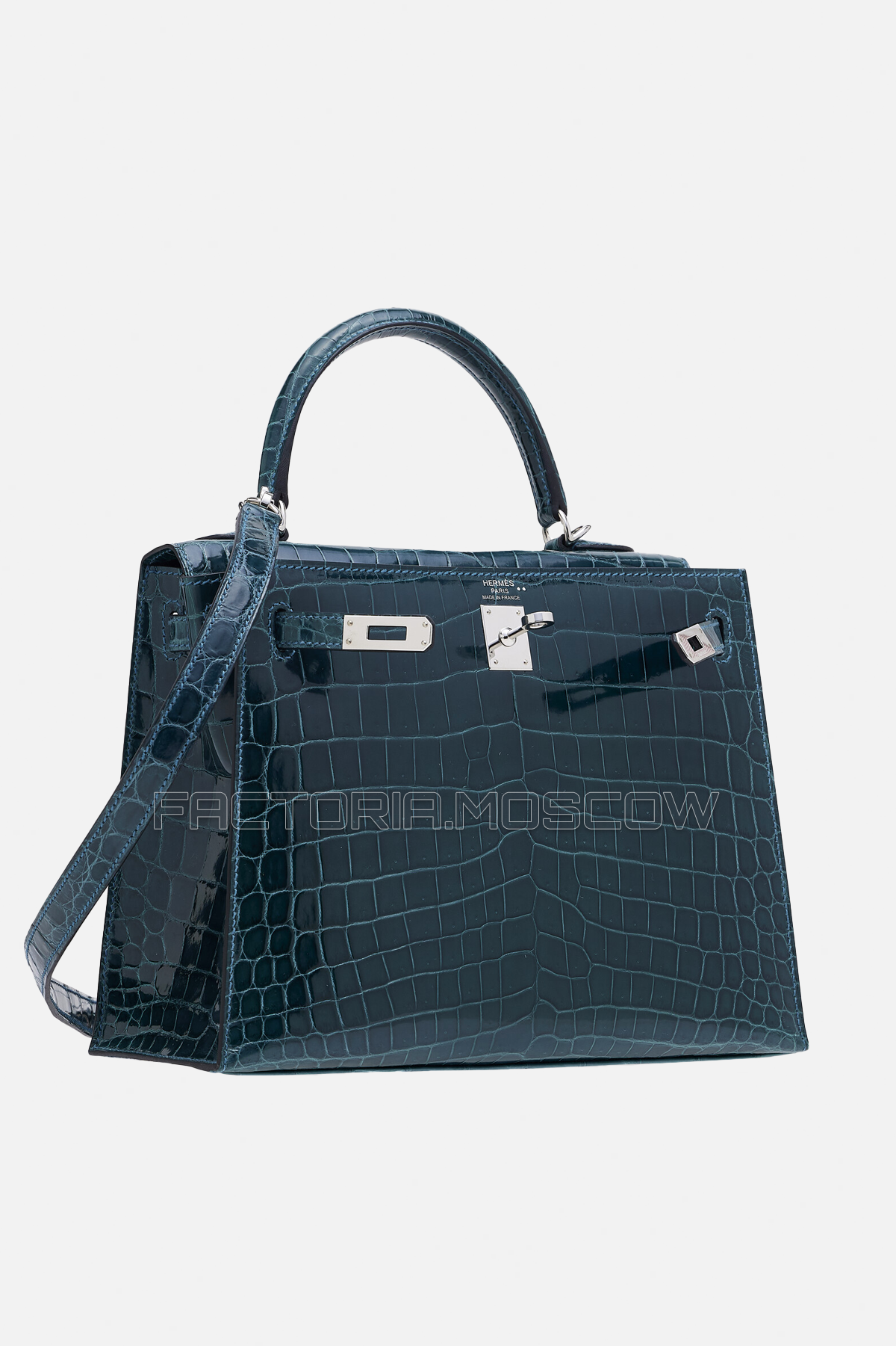 Мы предлагаем идеальное соответствие Hermes Kelly Sellier 25 Shiny Bleu Colvert Niloticus Crocodile PHW из 100% оригинальных материалов в комплекте бутика.