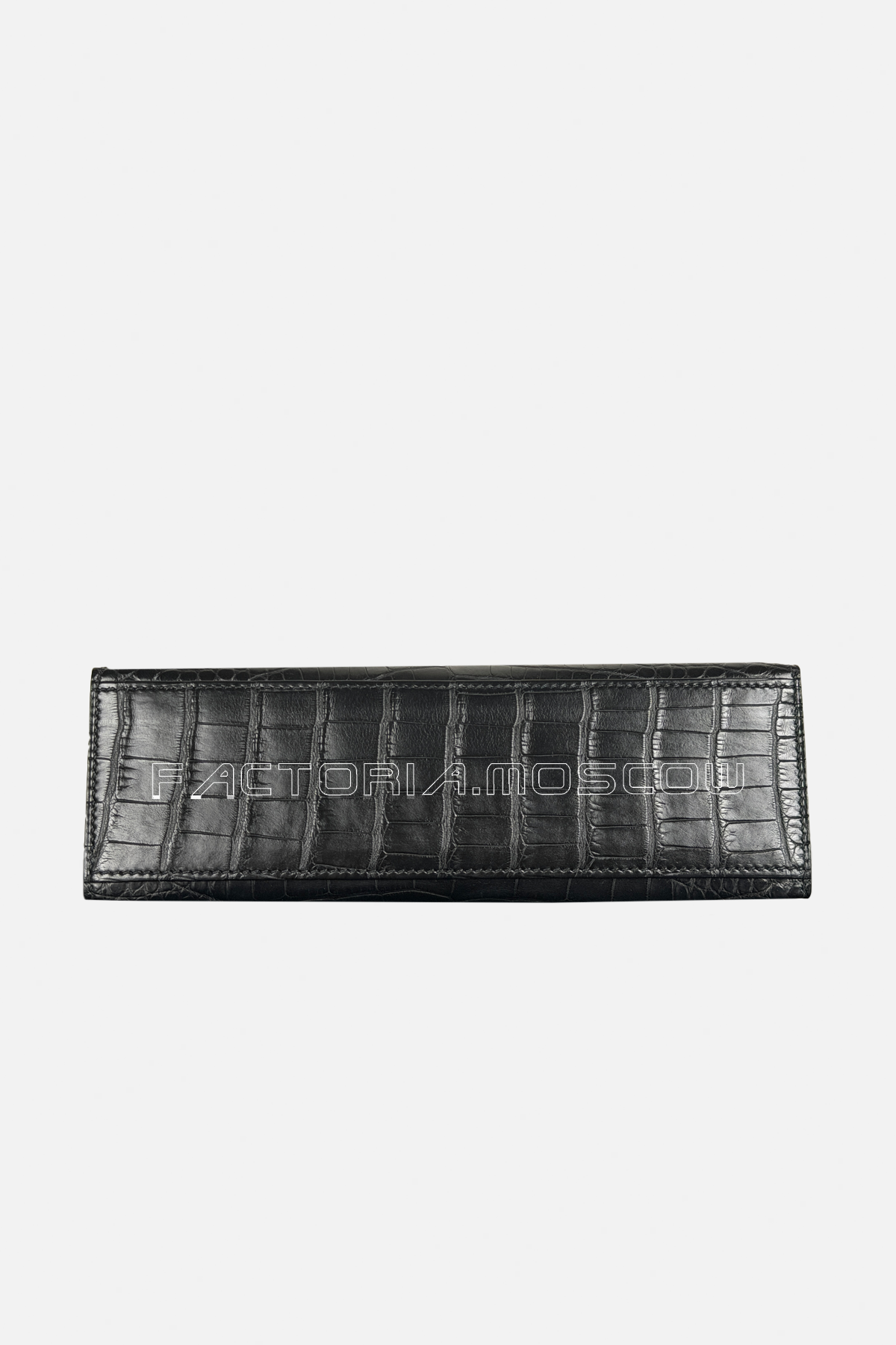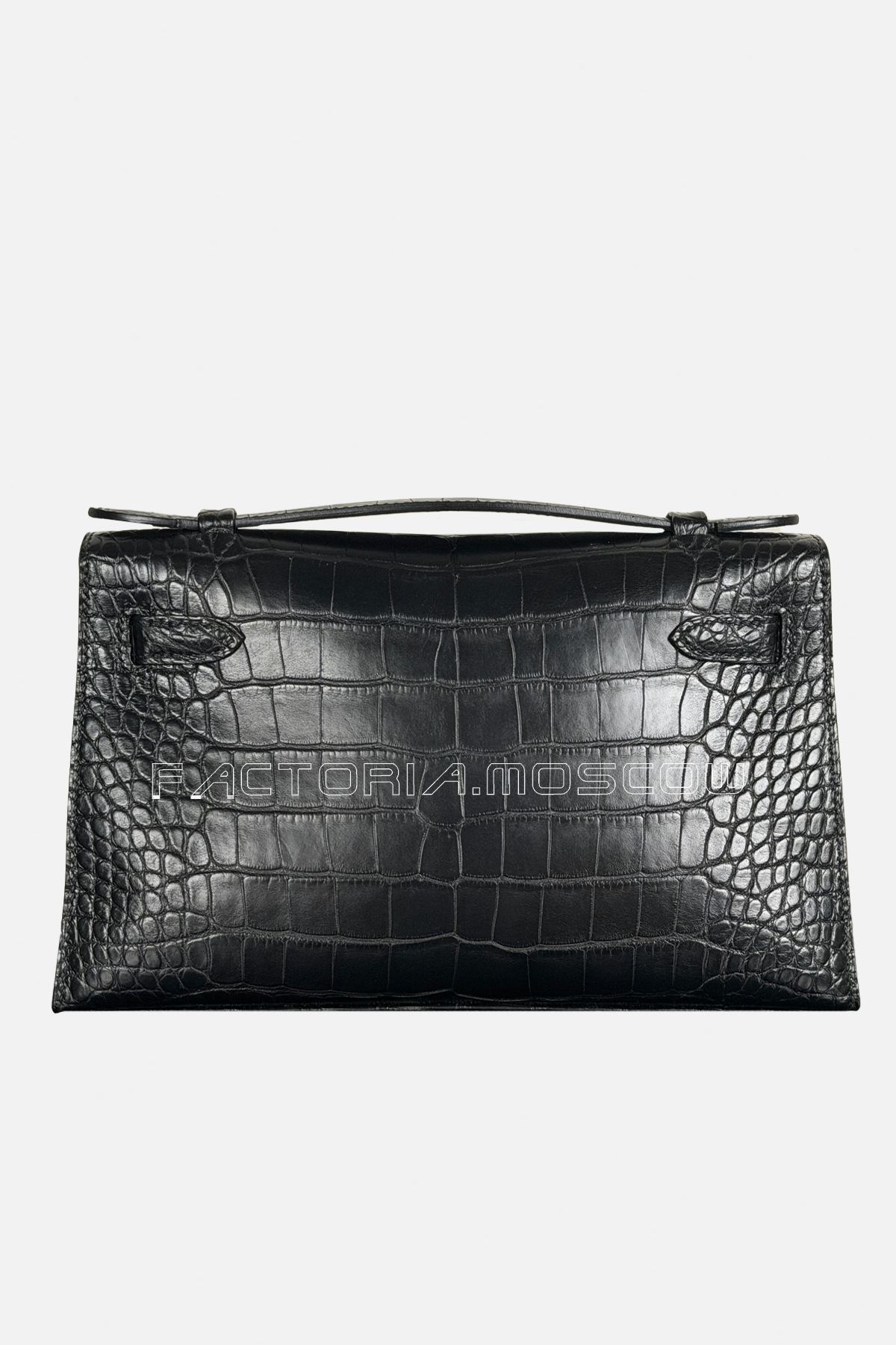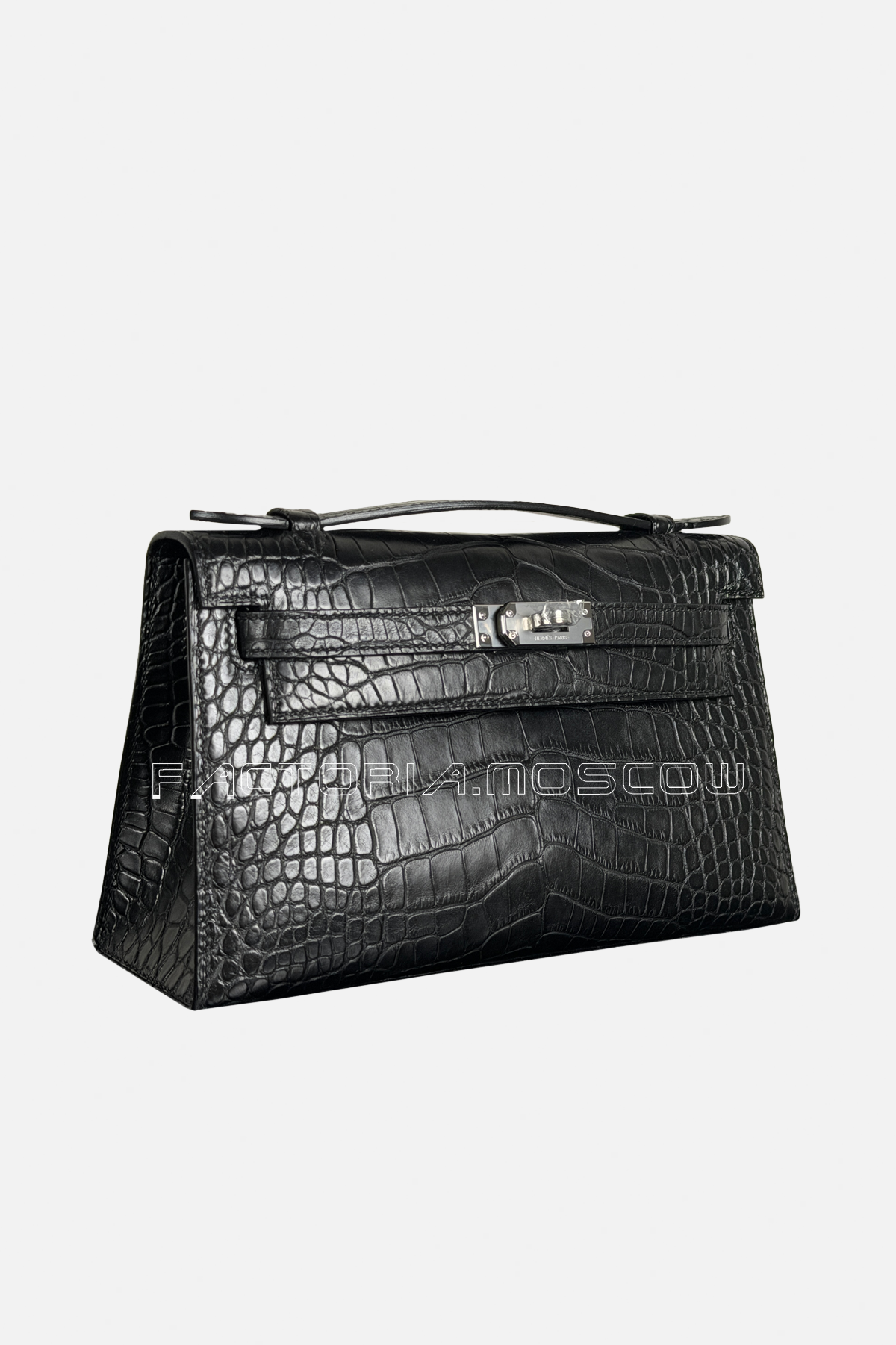 Сумка Hermes Kelly Pochette Alligator Matte в цвете Black — компактная миниатюрная модель, которая станет идеальной спутницей не только на вечеринках, но и в повседневности. Она выполнена в классическом модном дизайне модного дома Hermes, имеет женственное и лаконичное оформление. Идеально ложится в руку за счет удобного формата (22/15/5 см) и абсолютно непринужденно вписывается в любой образ. Черный клатч смотрится поистине благородно с палладиевой фурнитрой. Этот классический цвет элегантен, визуально «дополняет» образ и сочетается с абсолютно любой цветовой гаммой в гардеробе. Кожа аллигатора — это не только символ высшей категории роскоши, но и гарантия долговечности и уникальной текстуры, которая делает каждую сумку единственной в своем роде. Матовая поверхность добавляет современности и сдержанного блеска.